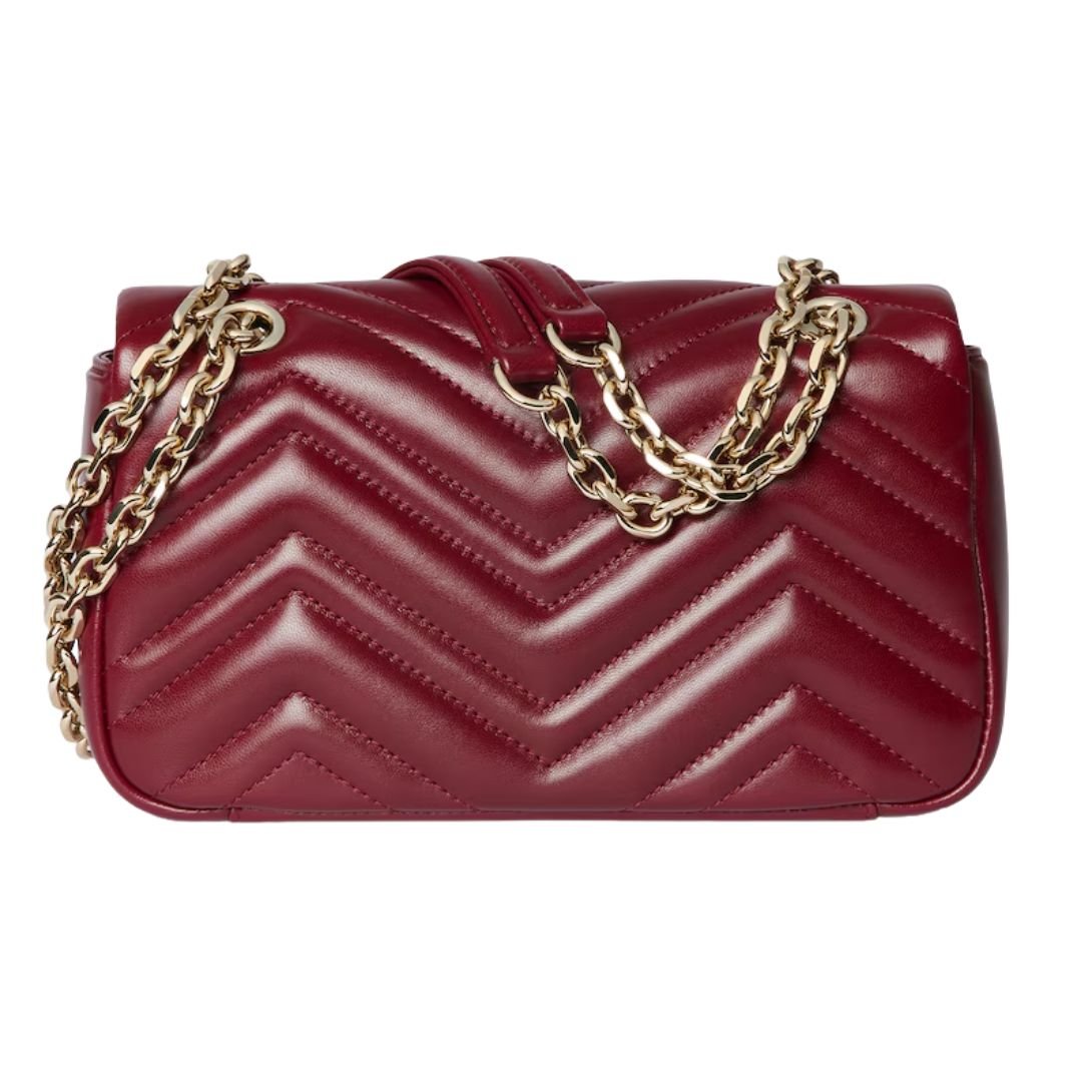 The GG Marmont collection is one of Gucci’s most iconic lines, combining timeless elegance with modern design elements. This standout piece is crafted from supple matelassé chevron lambskin leather, showcasing the signature Double G hardware, faceted chain strap, and refined craftsmanship that defines the House.