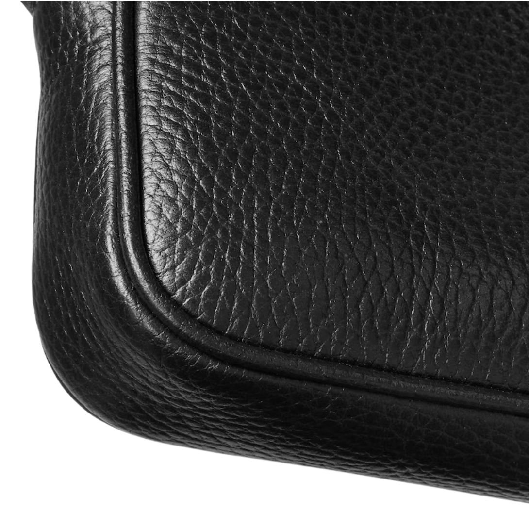 Crafted from smooth black leather, the bag is complemented by luxurious gold-toned hardware. A taffeta lining provides a lightweight and refined interior finish, enhancing the overall sophistication of the design.