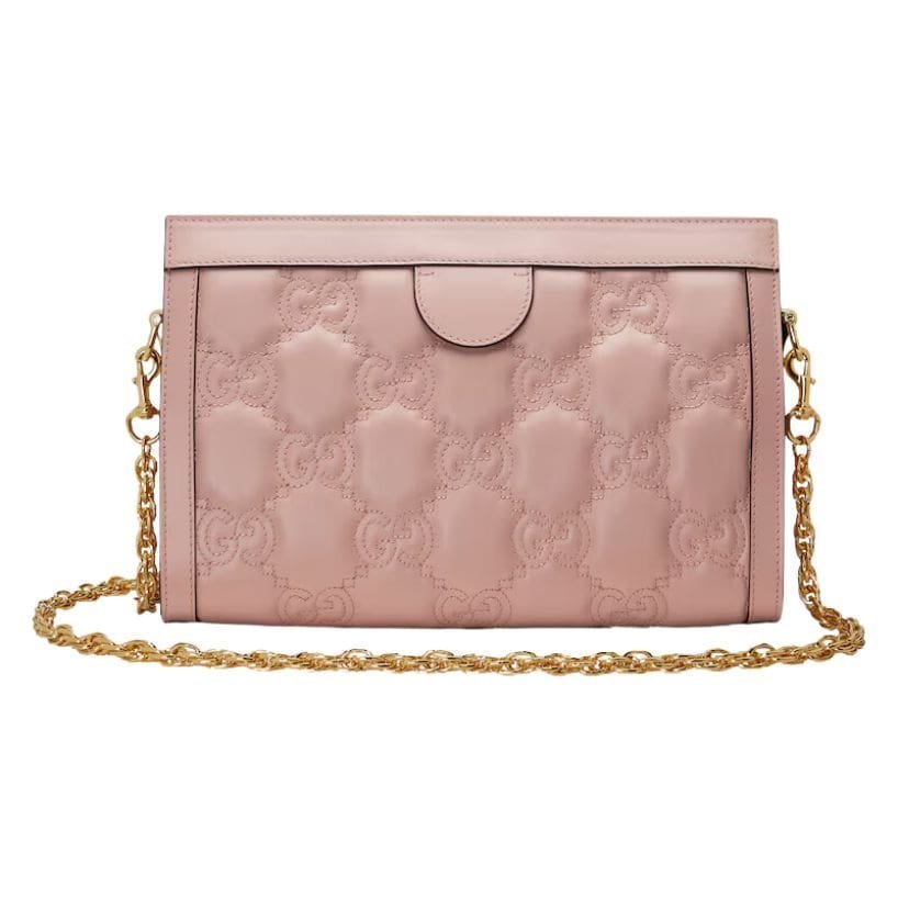 Measuring a compact yet versatile size, this small shoulder bag is designed for effortless day-to-night transitions. Its structure is sleek and streamlined, providing ample space for essentials without overwhelming the silhouette. The bag is complemented by a delicate gold-tone chain strap, which adds a hint of opulence and allows for versatile wear, whether draped casually over the shoulder or worn crossbody for a more contemporary look. GUCCI GG MATELASSE SMALL BAG