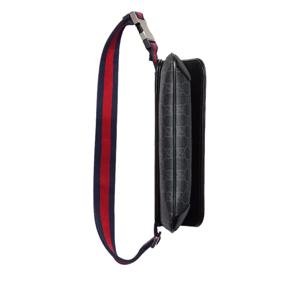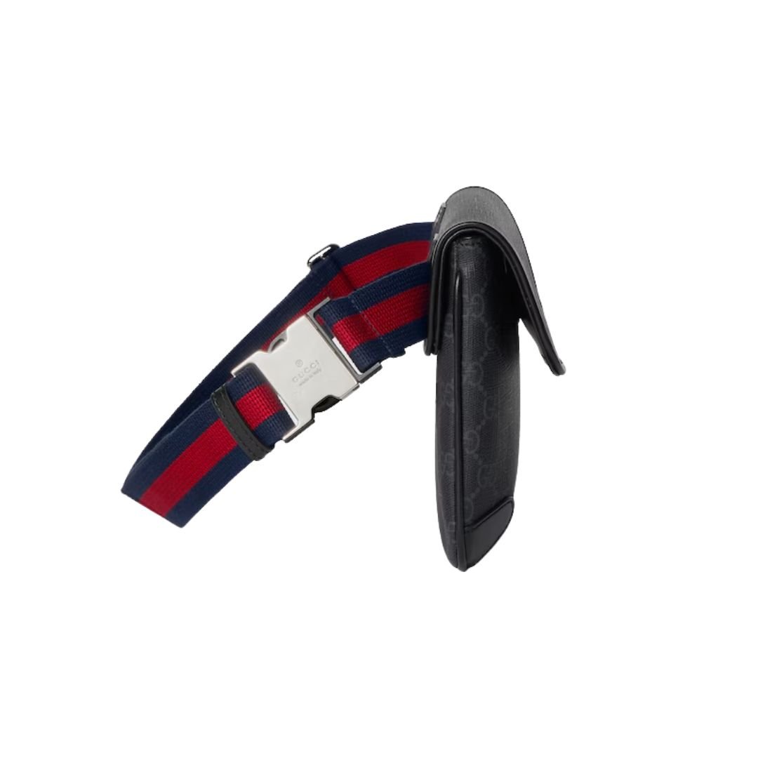 Crafted from coated microfiber fabric, this belt bag showcases the high-quality craftsmanship Gucci is renowned for. The black leather trim adds a refined touch, enhancing the bag’s elegant aesthetic.
