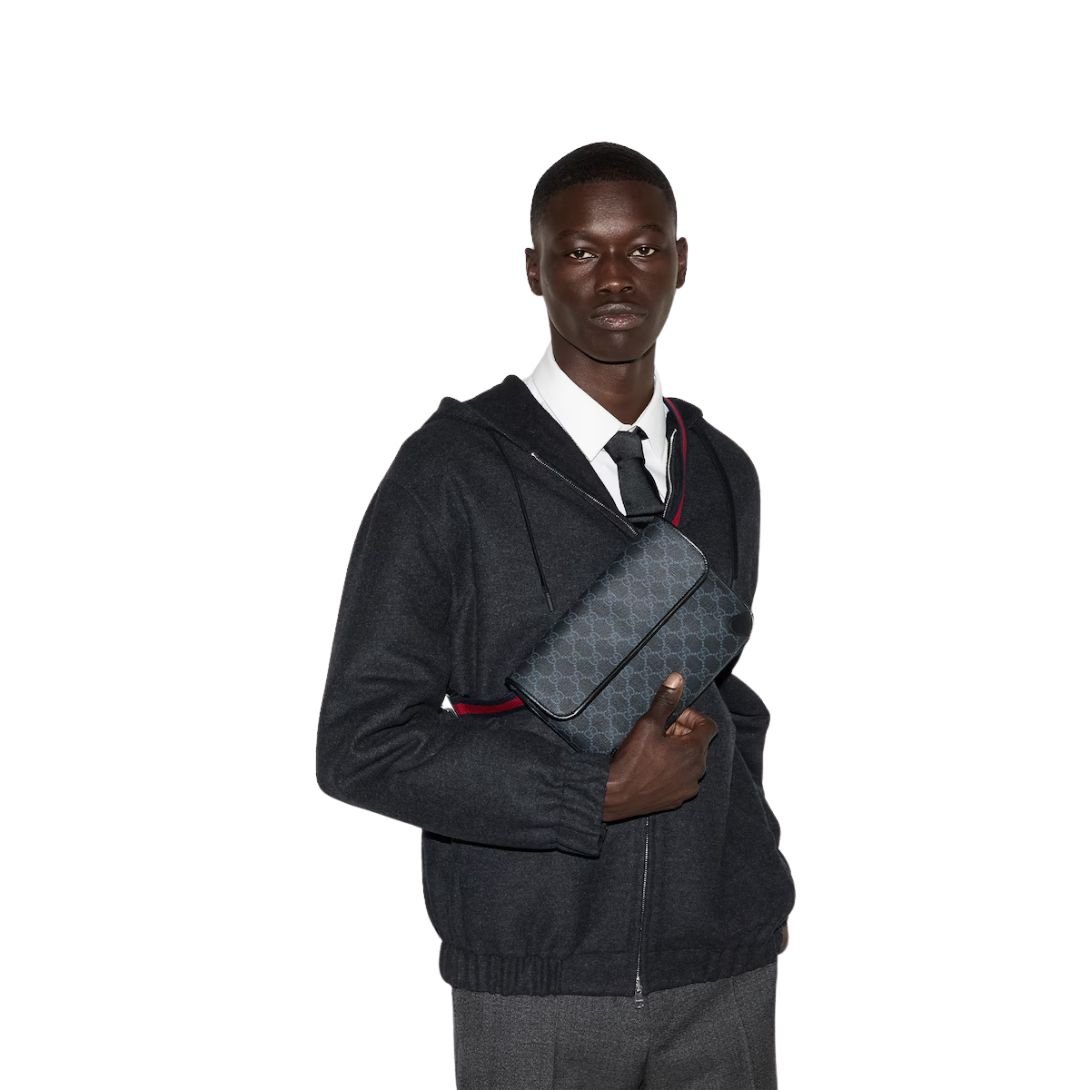 The GG Supreme canvas is a signature material of the House, known for its softness and malleability, making it a lasting favorite. In this piece, the GG Supreme canvas is presented in an all-black variation, offering a sleek and modern twist on the classic design.