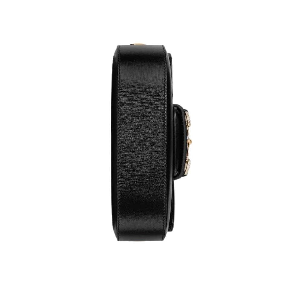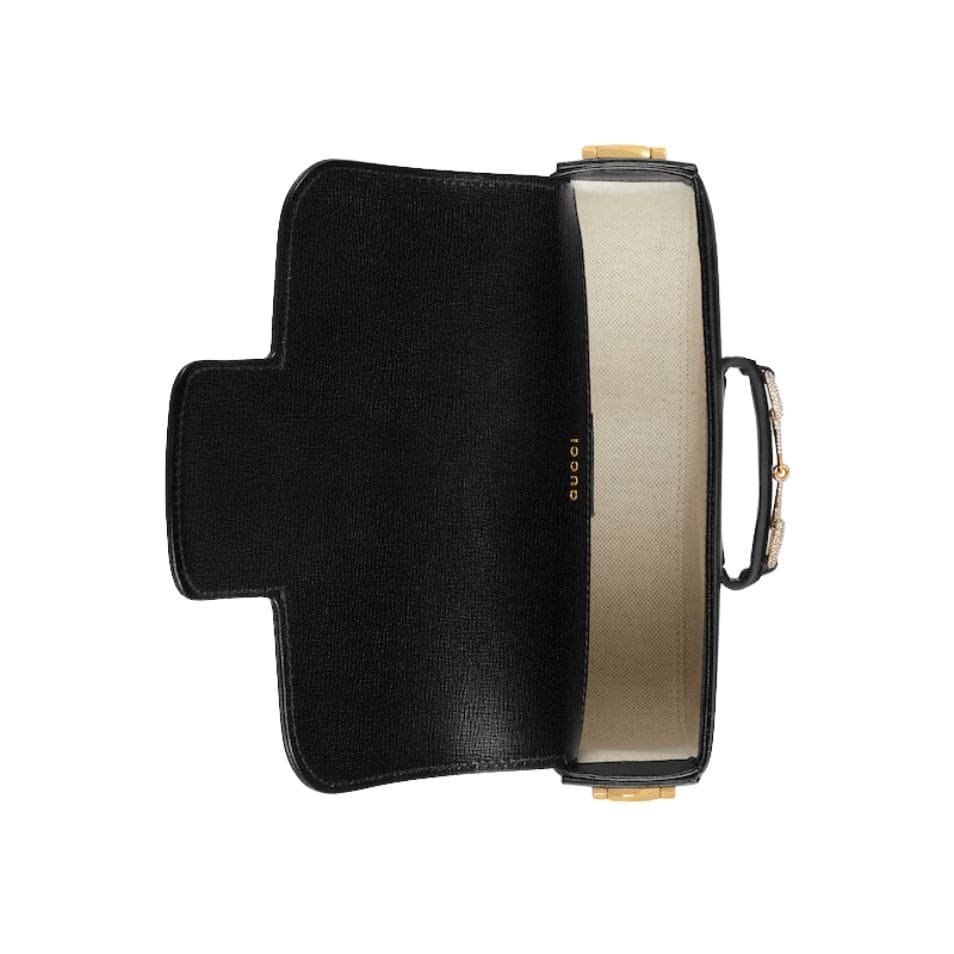 Measuring at a compact size, the Horsebit 1955 Mini Bag is perfect for those who appreciate a refined yet practical accessory. The exterior is made from high-quality leather, available in various shades, including classic black, pristine white, and rich brown, each exuding its unique charm. The leather is meticulously treated to achieve a smooth, supple finish that enhances its durability and timeless appeal. GUCCI HORSEBIT 1955 MINI BAG