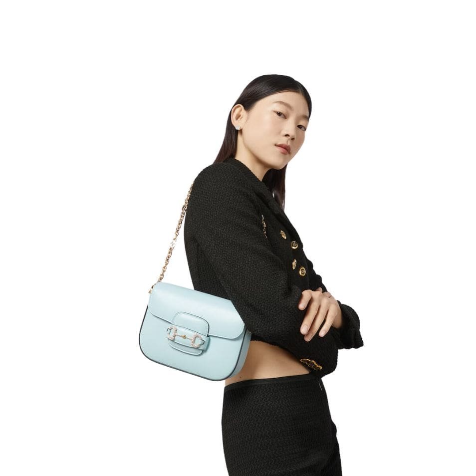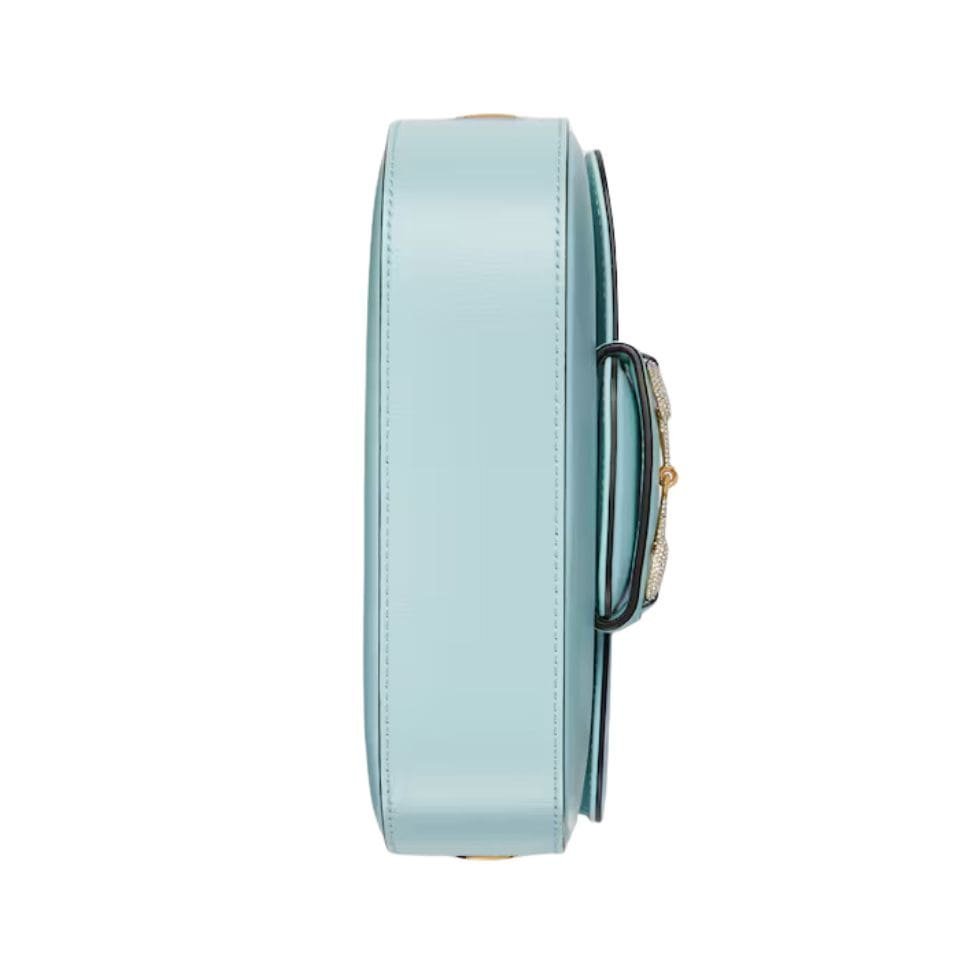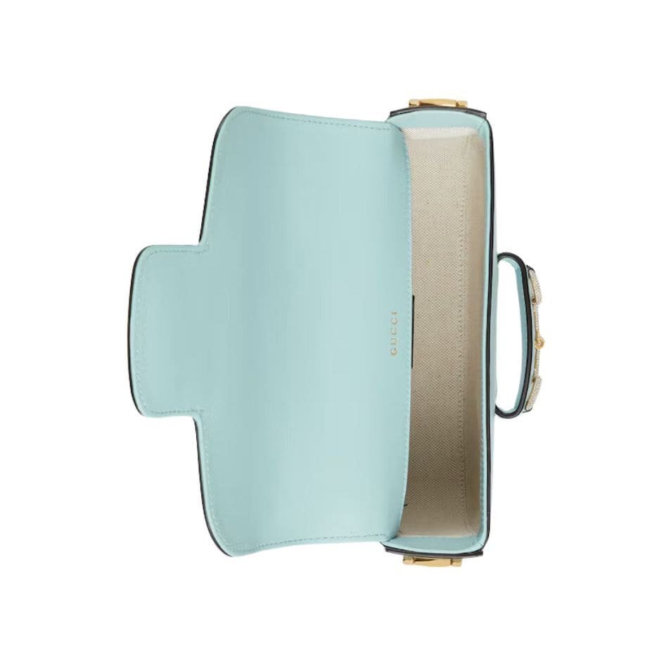 Measuring at a compact size, the Horsebit 1955 Mini Bag is perfect for those who appreciate a refined yet practical accessory. The exterior is made from high-quality leather, available in various shades, including classic black, pristine white, and rich brown, each exuding its unique charm. The leather is meticulously treated to achieve a smooth, supple finish that enhances its durability and timeless appeal. GUCCI HORSEBIT 1955 MINI BAG
