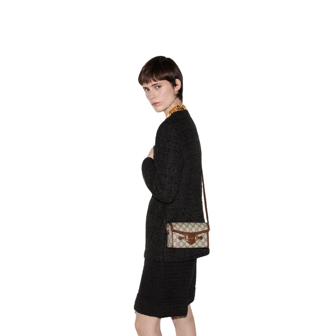 The bag features the signature Horsebit detail, a hallmark of the Gucci Horsebit 1955 collection. This elegant hardware adds a luxurious accent to the overall design, further enhancing its timeless appeal.