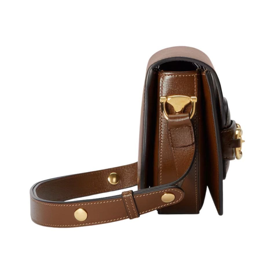 The bag’s design is inspired by archival elements, featuring the iconic horsebit hardware, which has been a hallmark of Gucci’s collections since the 1950s. This signature detail is prominently displayed on the front, adding a touch of heritage to the modern silhouette. The horsebit hardware is polished to perfection, offering a striking contrast against the bag’s luxurious leather. GUCCI HORSEBIT 1955 MINI ROUNDED BAG