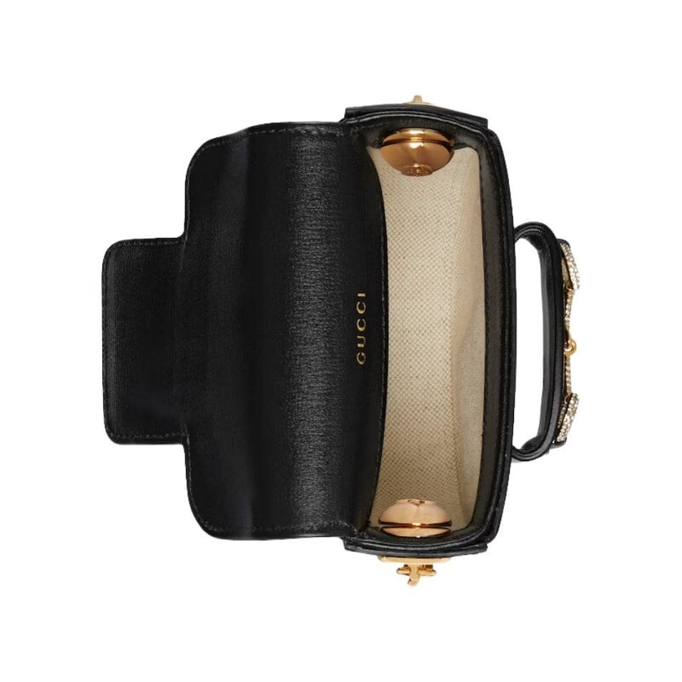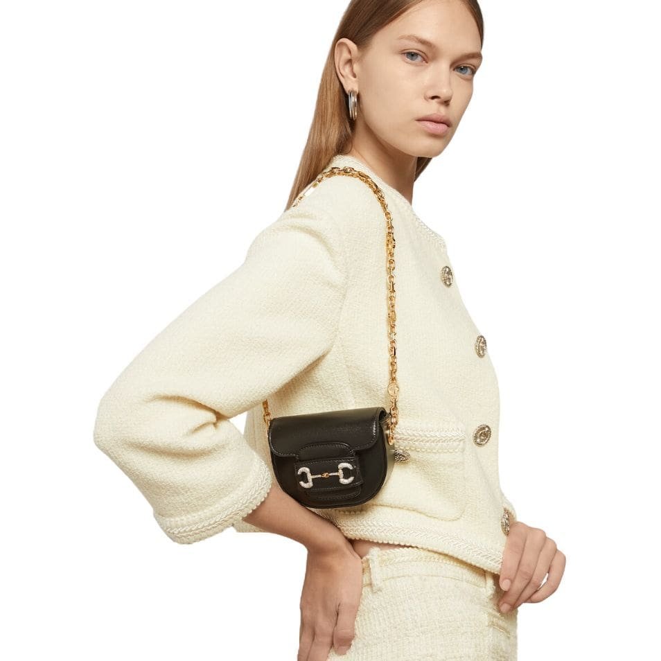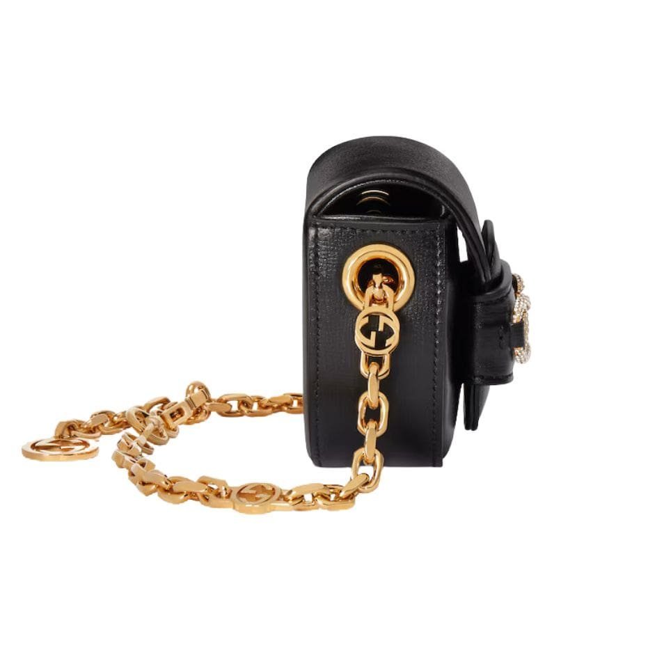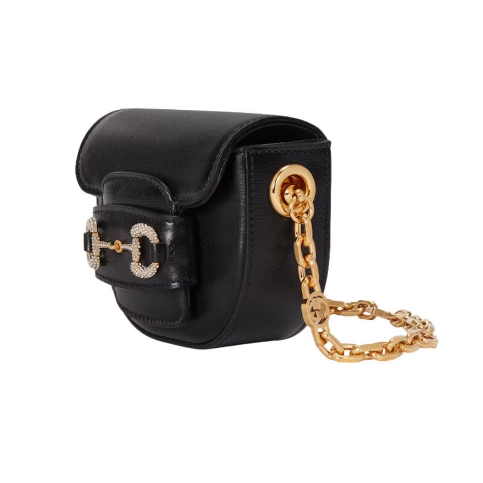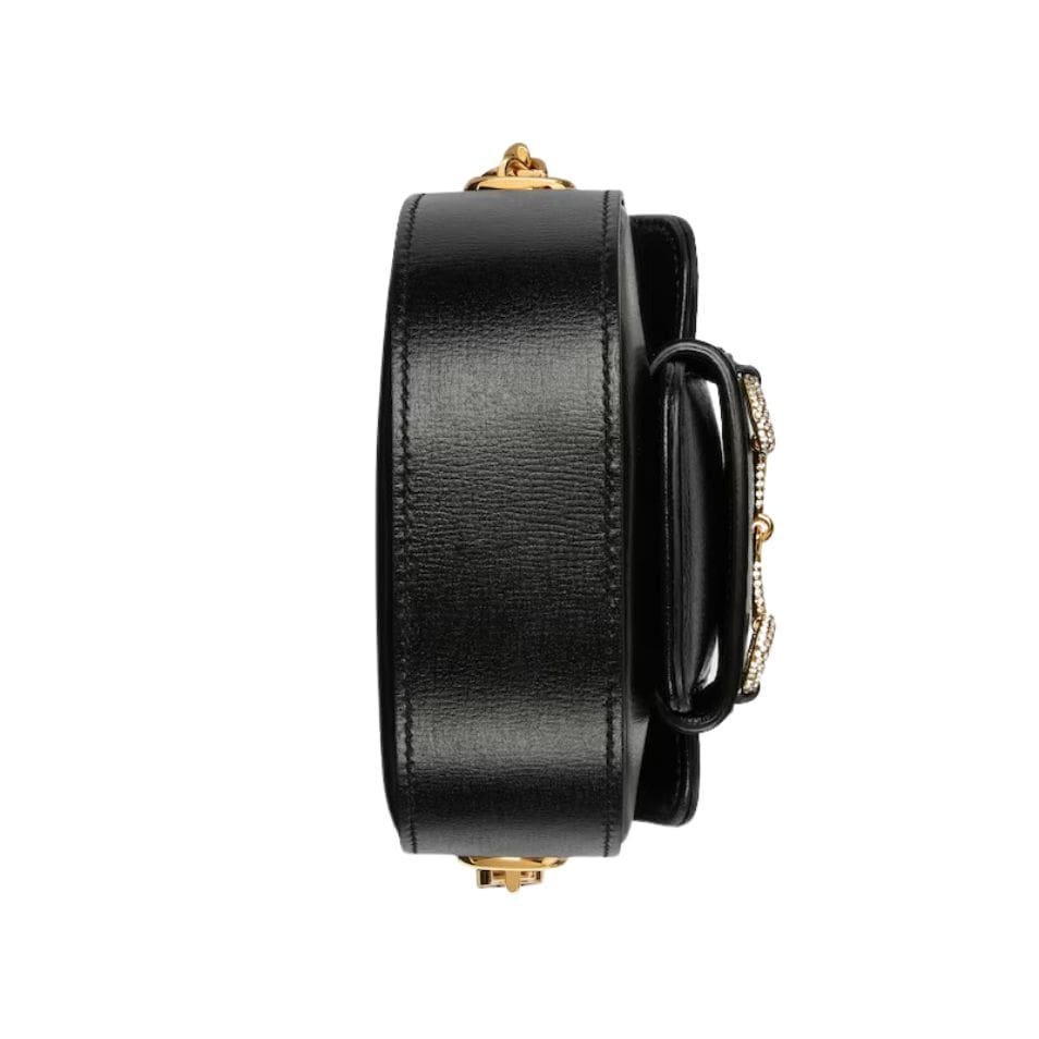 Crafted from premium leather, the rounded silhouette of the bag offers a sleek, contemporary shape that complements both casual and formal attire. The smooth leather exterior exudes a sense of luxury and durability, while the subtly embossed Gucci logo on the front adds a touch of branding without overpowering the design. The Horsebit detail, a hallmark of Gucci’s heritage, is prominently featured in a polished gold-tone finish, adding a refined touch of sophistication and a nod to the brand’s equestrian roots.