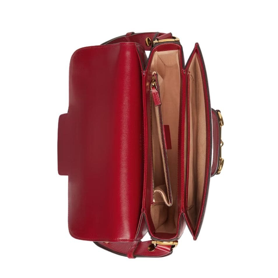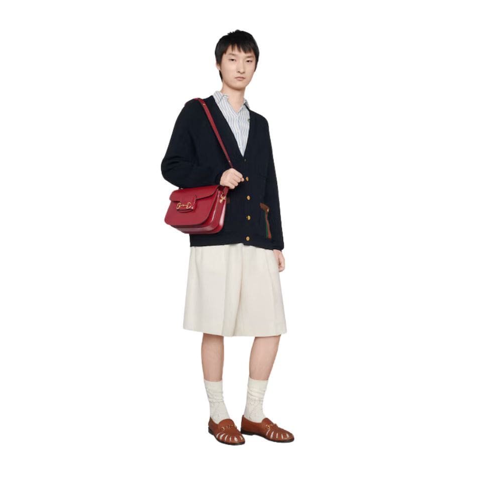 The Horsebit 1955 Shoulder Bag is designed with both style and functionality in mind. Its structured silhouette provides ample space for essentials, while the interior is thoughtfully organized with multiple compartments to keep belongings in order. The bag is equipped with an adjustable leather shoulder strap, allowing for versatile wear options—whether draped elegantly over the shoulder or carried crossbody.