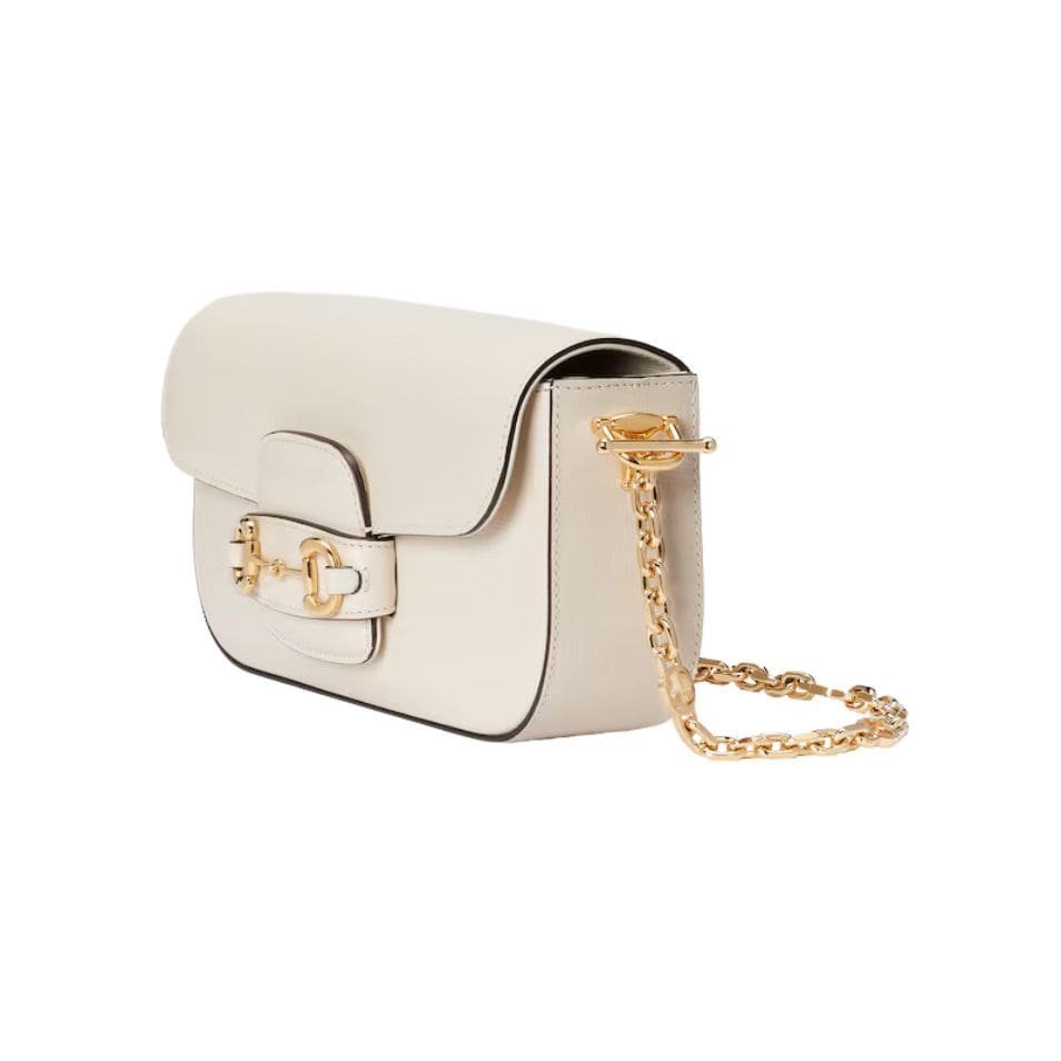 The defining feature of the Horsebit 1955 Small Shoulder Bag is the signature gold-tone horsebit hardware. This equestrian-inspired detail, first introduced by Gucci in the 1950s, adds a touch of classic elegance to the bag. The horsebit motif, placed prominently on the front flap, serves as a nod to the brand’s storied past while also acting as a statement piece in its own right. GUCCI HORSEBIT 1955 SMALL SHOULDER BAG