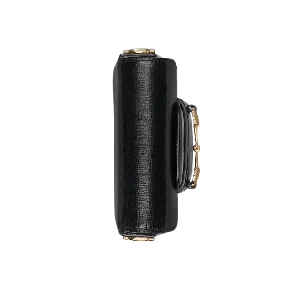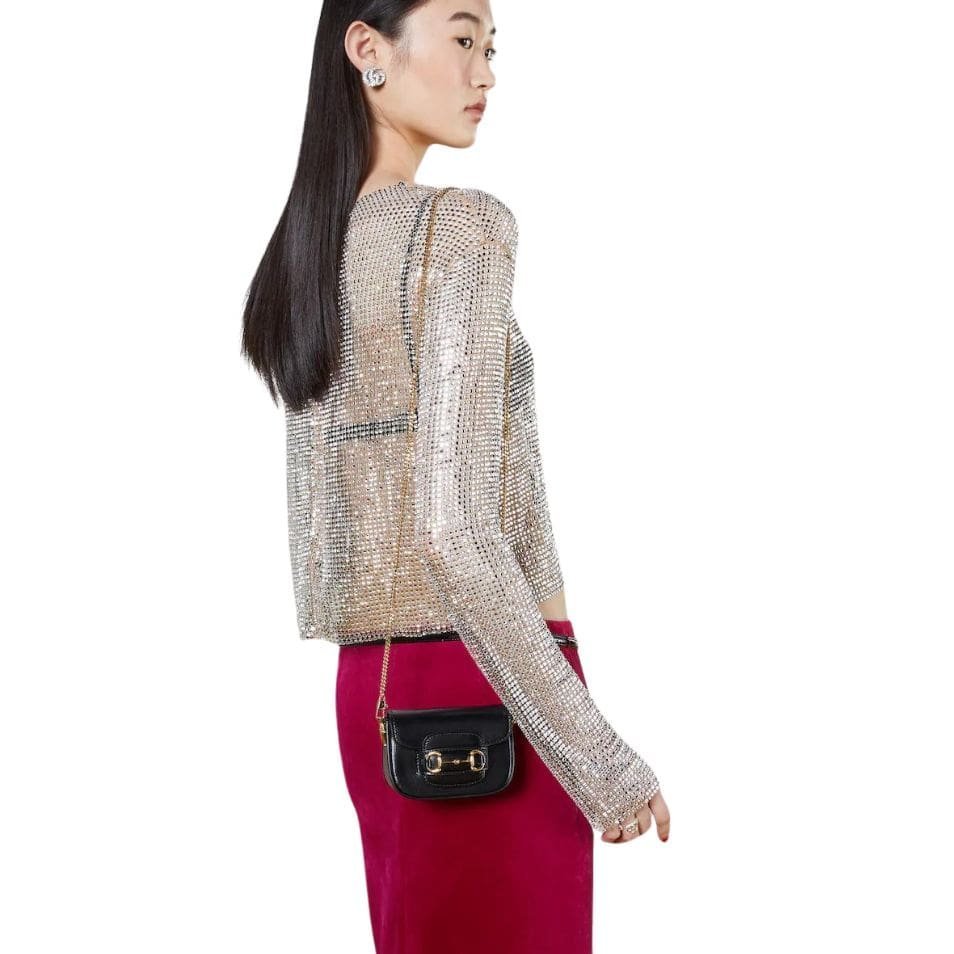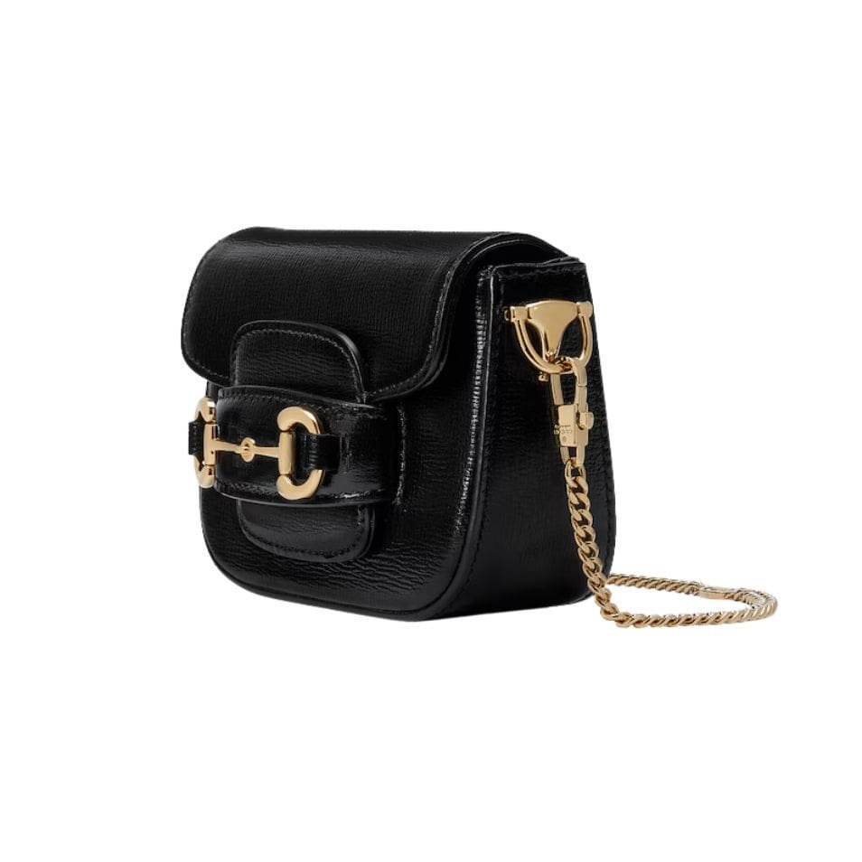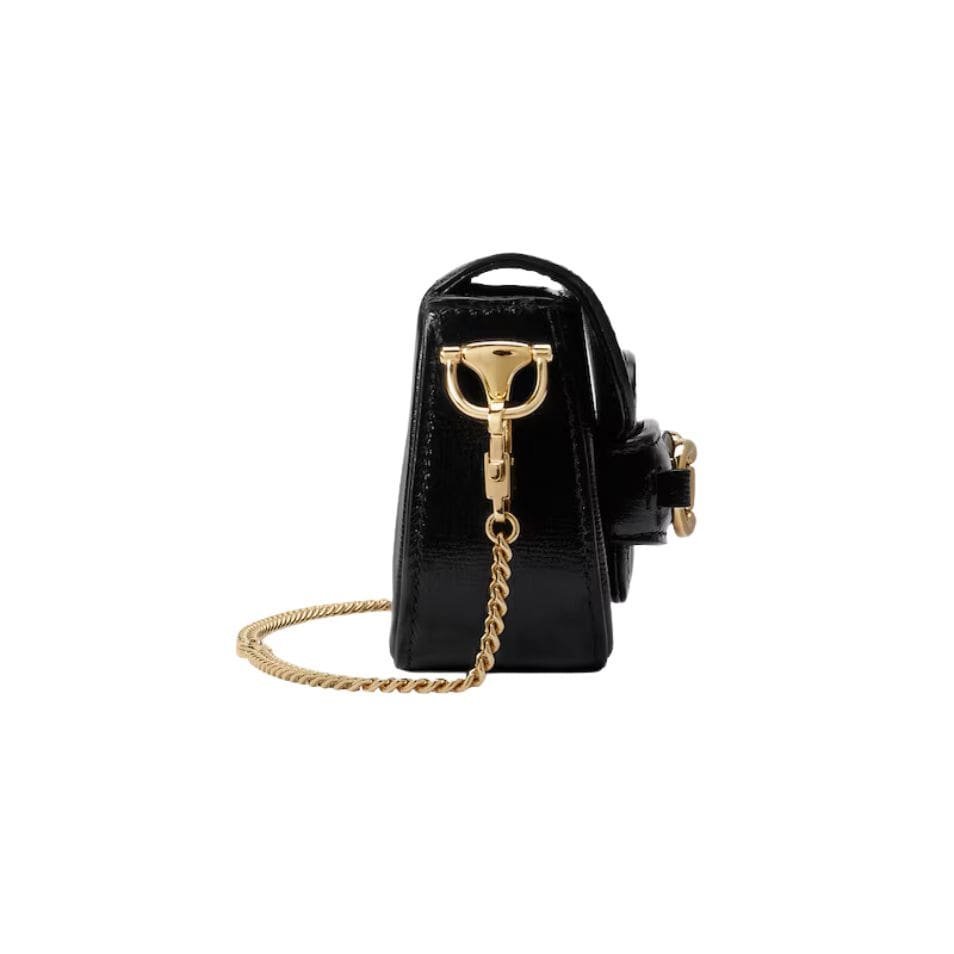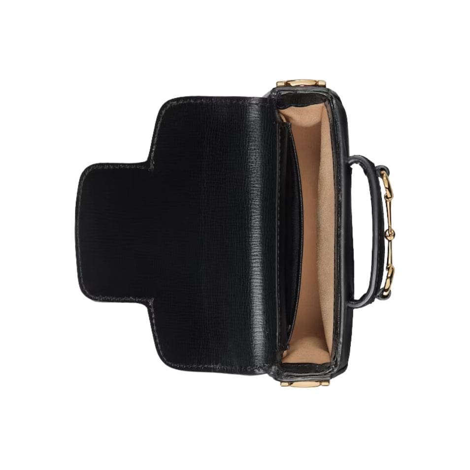 The defining feature of the Gucci Horsebit 1955 Super Mini Bag is its signature Horsebit detail, which adorns the front flap. This iconic piece of hardware, rendered in gleaming gold-tone metal, adds a touch of vintage charm and sophistication to the bag. The flap closure, secured with a magnetic snap, ensure s easy access to the bag’s interior while keeping your belongings safe and secure. GUCCI HORSEBIT 1955 SUPER MINI BAG