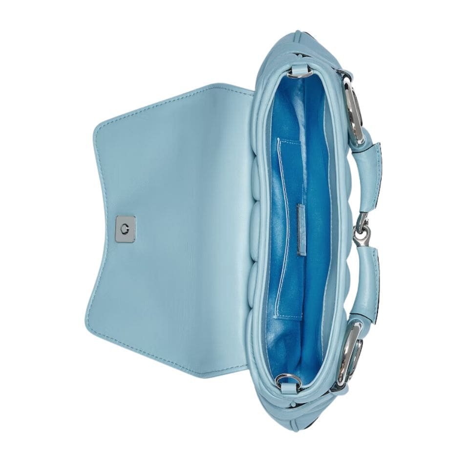 Inside, the Gucci Horsebit Chain Small Shoulder Bag offers ample space despite its compact size. The interior is thoughtfully designed with a lined compartment, providing enough room to carry essentials such as a phone, wallet, and keys. The bag closes securely with a magnetic flap, ensuring your belongings are kept safe while maintaining a sleek silhouette. GUCCI HORSEBIT CHAIN SMALL SHOULDER BAG