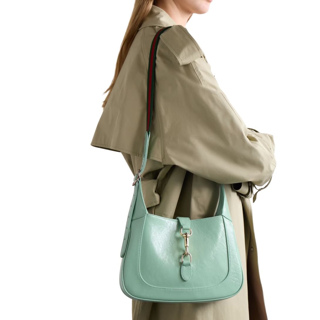 GUCCI JACKIE SMALL PATENT-LEATHER SHOULDER BAG LIGHT GREEN