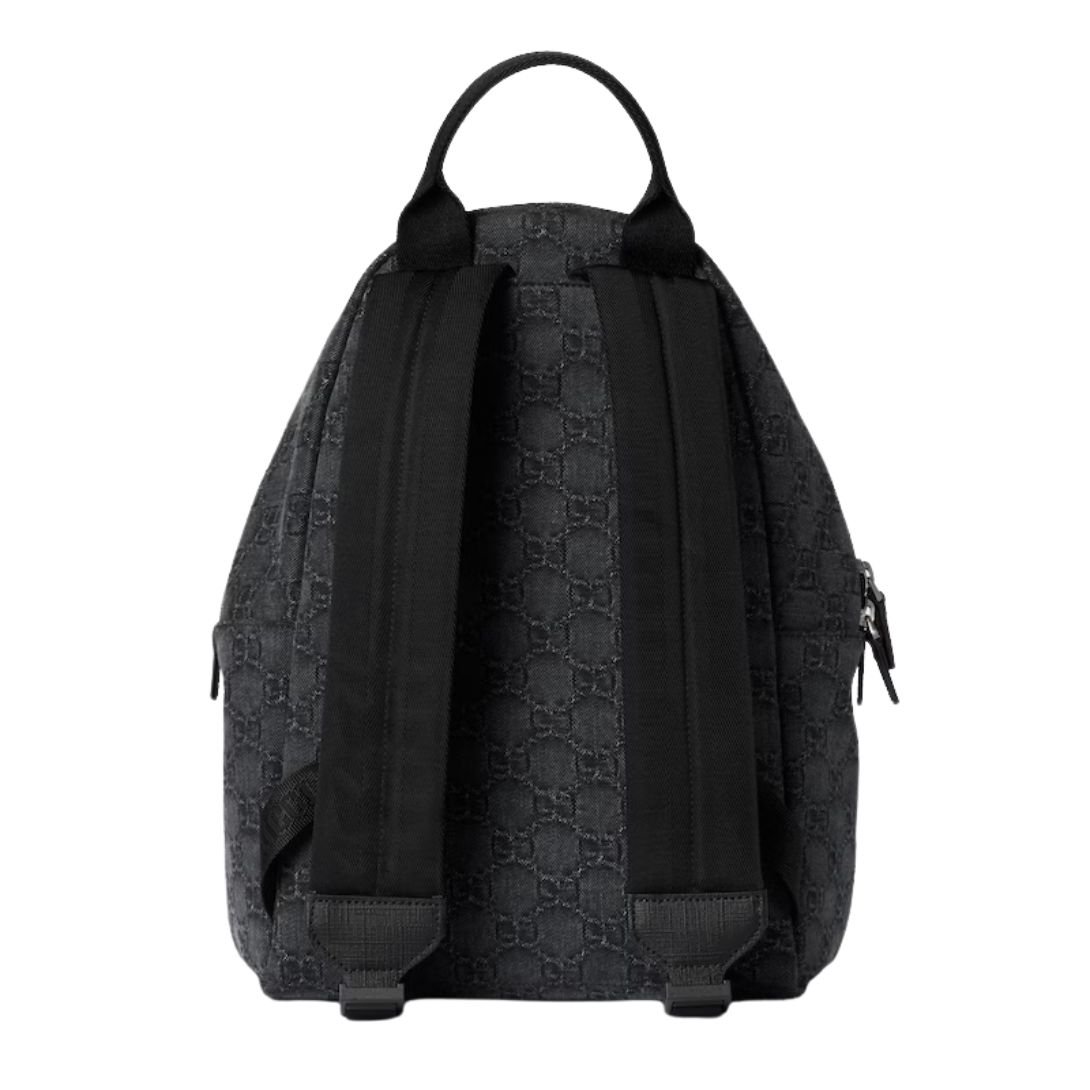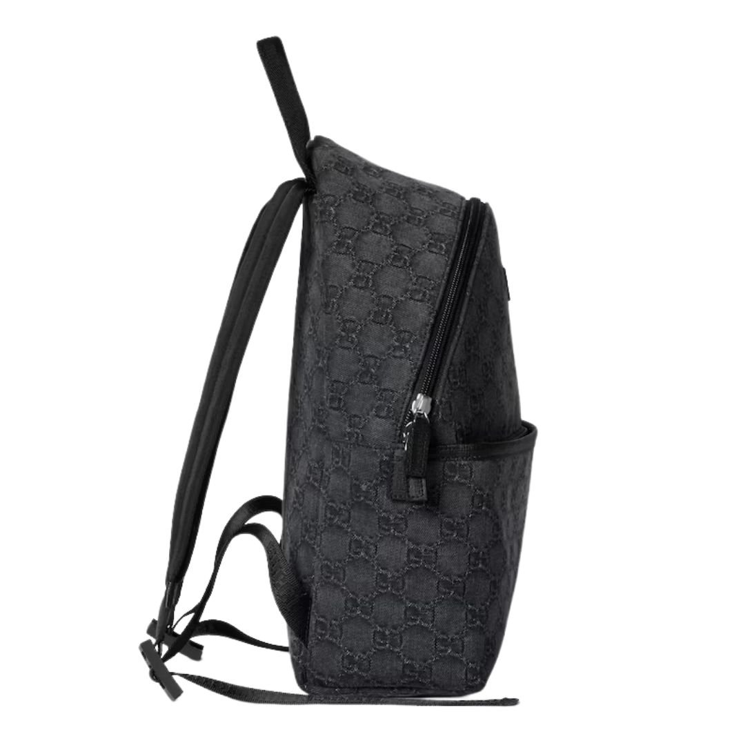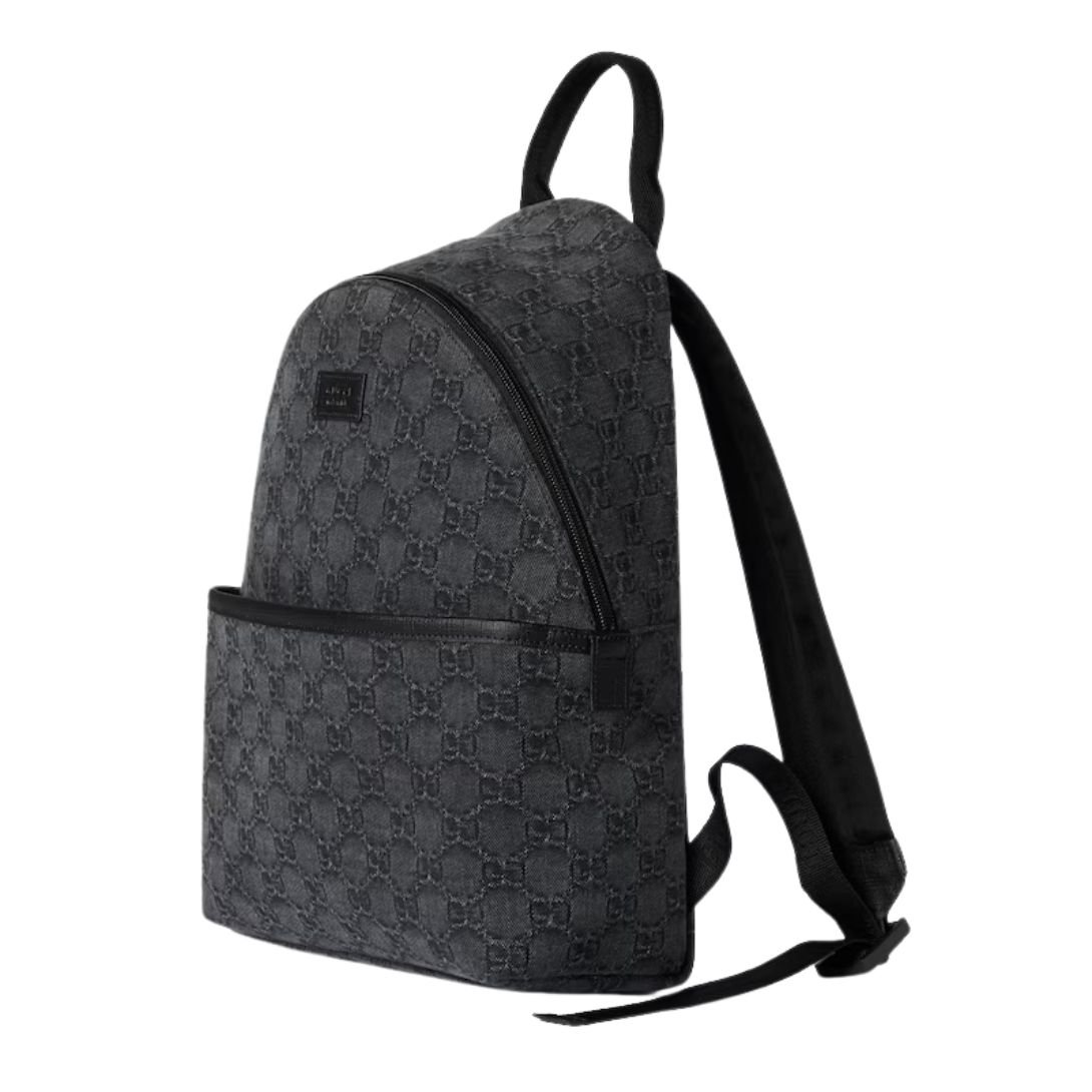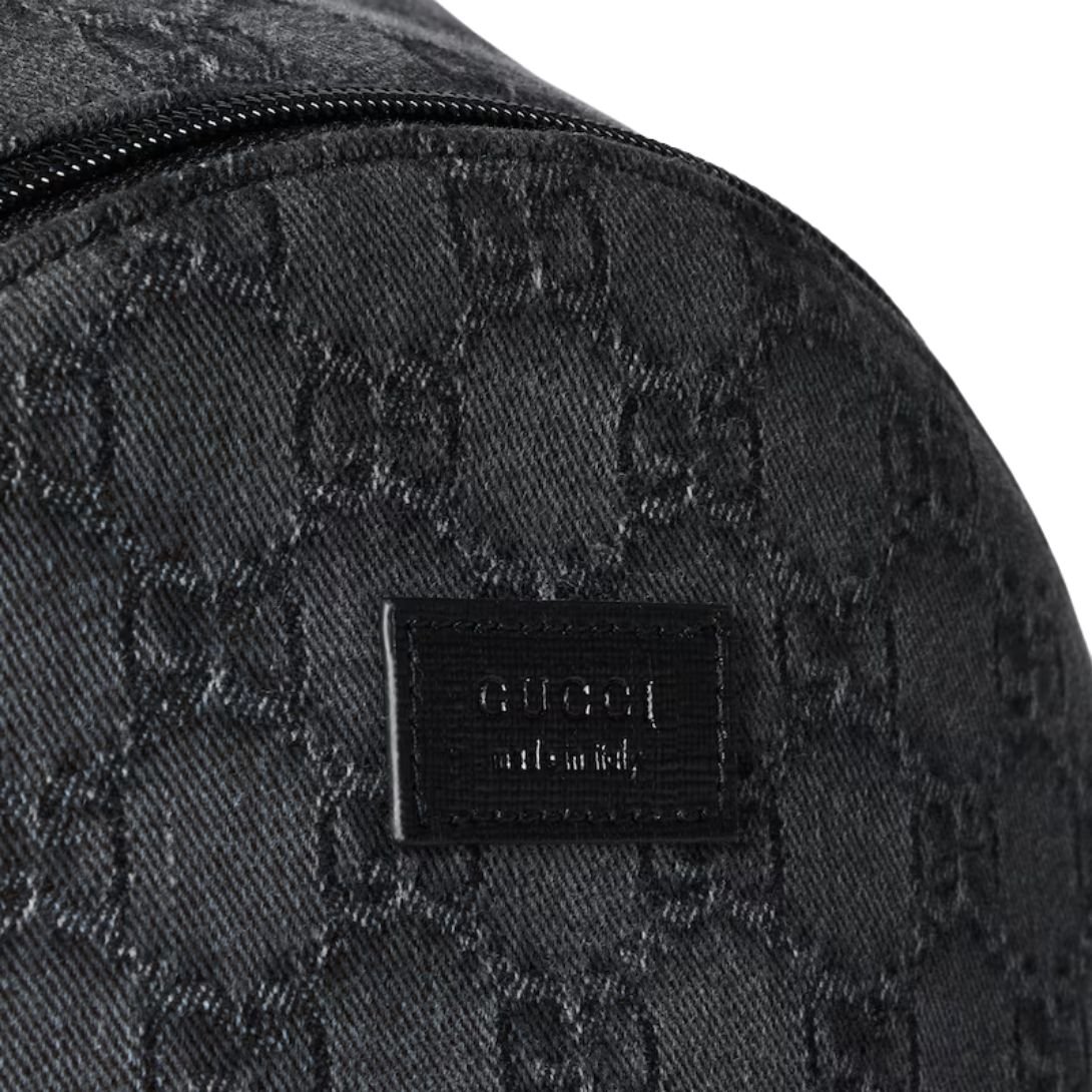Crafted from black GG denim, the backpack is accented with sleek black Supreme trim for a modern, understated look. A “Gucci Made in Italy” leather label at the front highlights the brand’s heritage and attention to craftsmanship. Inside, a durable lining ensures the piece can handle everyday adventures while maintaining its luxurious feel.