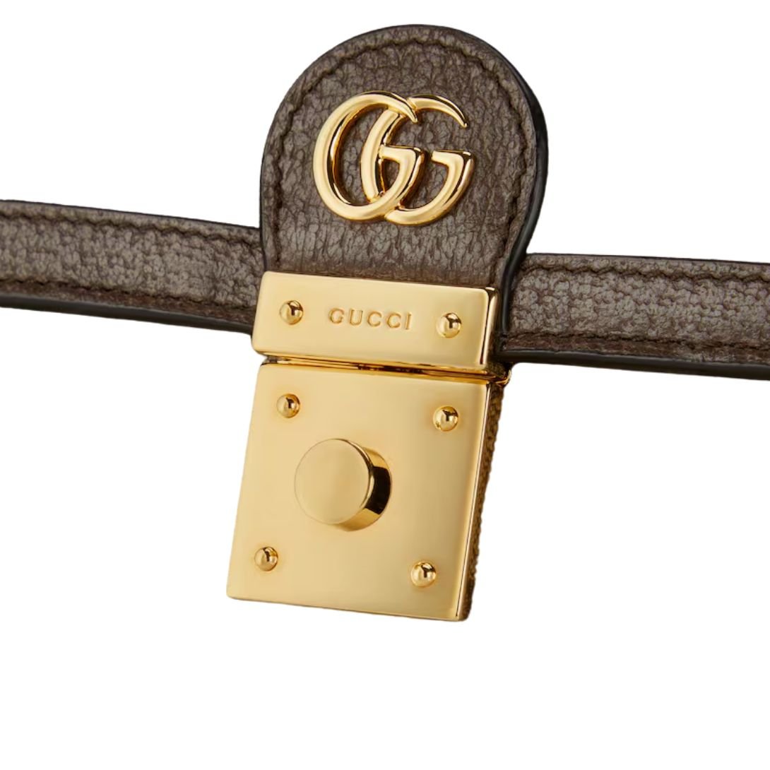 A standout feature of this bag is the iconic Double G hardware, which serves as a signature emblem of the brand. The lock closure enhances the bag’s luxurious feel while providing secure storage.