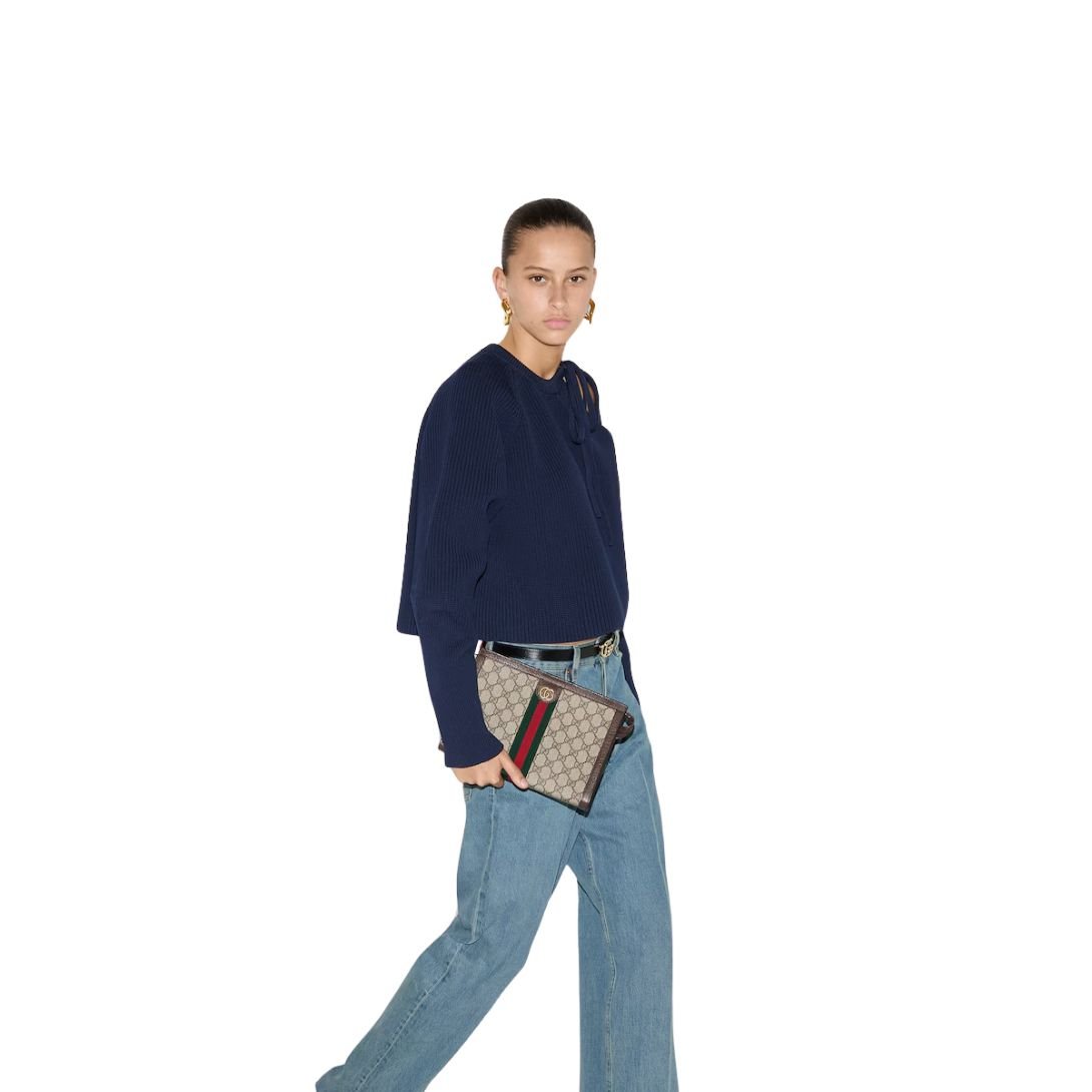 Celebrating Gucci’s iconic heritage with a modern twist, the Ophidia collection continues to evolve. This refined pouch seamlessly blends the House’s historic elements with contemporary design, highlighted by signature details.
