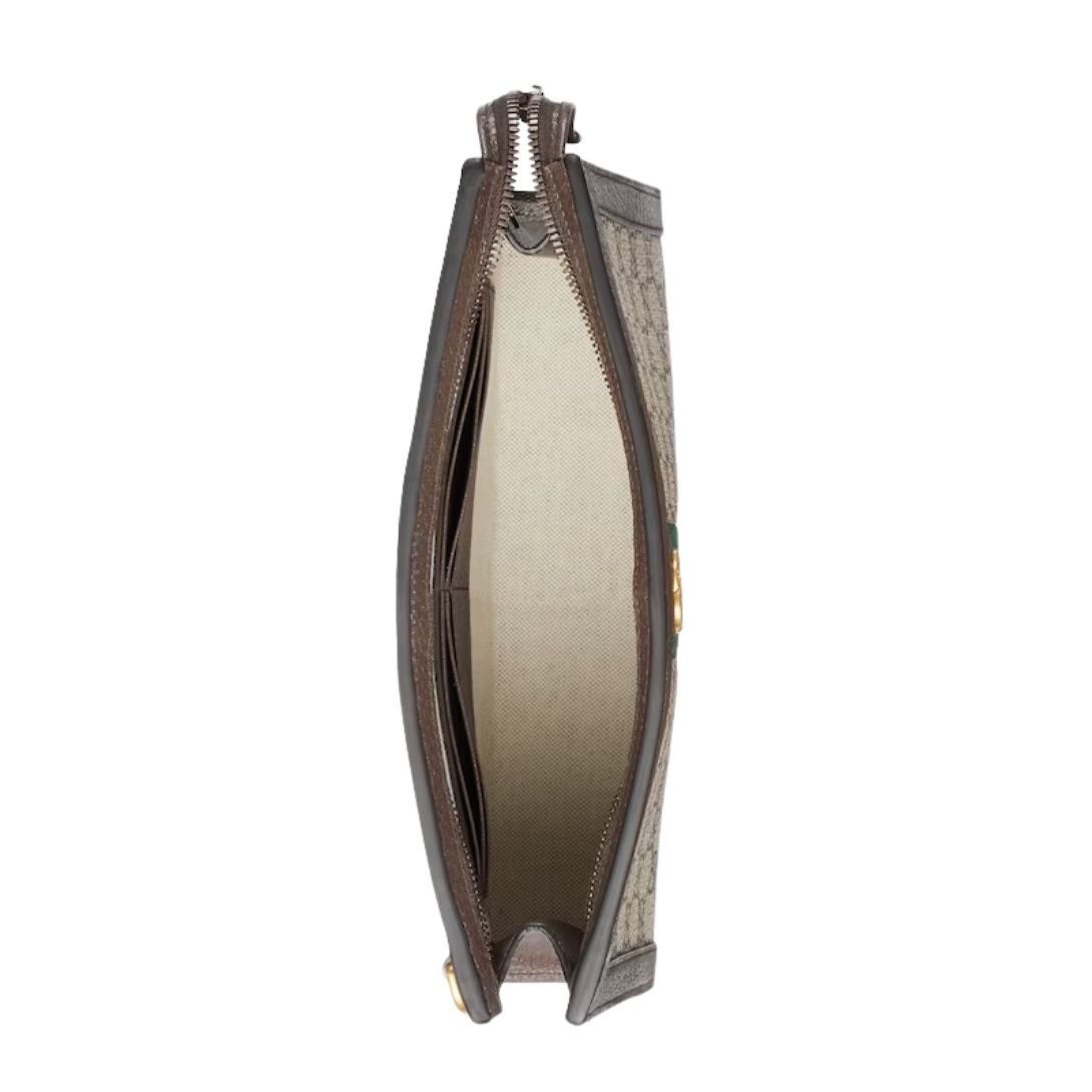 Crafted from beige and ebony GG Supreme canvas, the pouch is enhanced by the iconic green and red Web stripe. Gold-toned hardware and a cotton linen lining complete the design, creating a perfect balance of luxury and practicality.