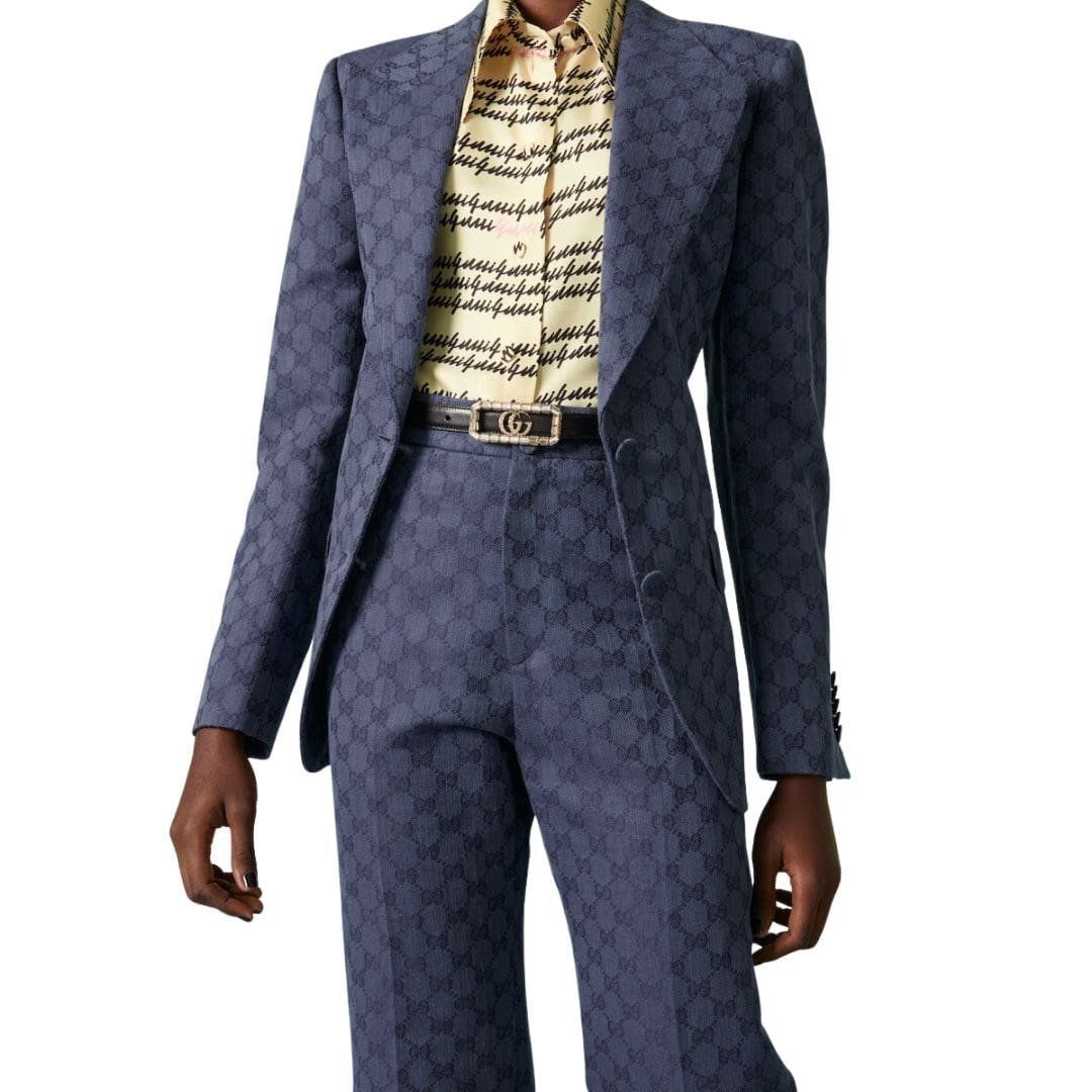 The intricate design is elevated further with gold-toned hardware, adding a luxurious touch to every ensemble it adorns. However, the true pièce de résistance lies in the centerpiece: a dazzling Crystal Double G buckle. Each crystal meticulously placed to catch and reflect light, casting a mesmerizing sparkle that captivates onlookers.