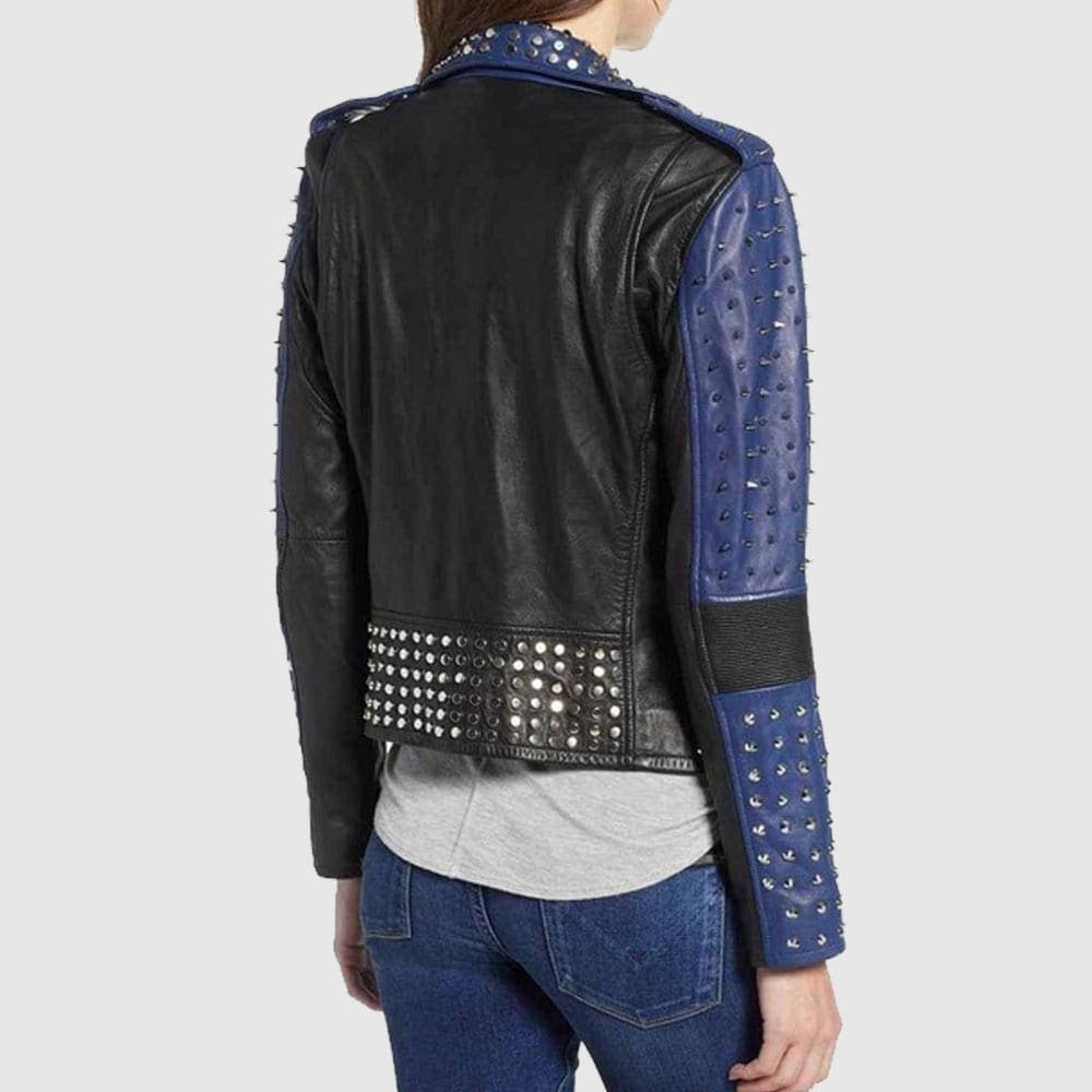 Handmade Women Two Color Punk Style Studded Leather Jacket