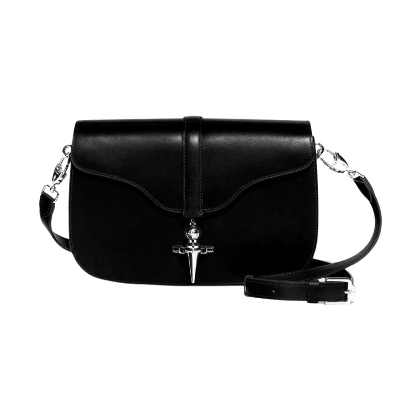 The exterior of the bag showcases a sleek, streamlined silhouette with a subtle embossed logo that adds a touch of luxury without overwhelming the design. The adjustable leather shoulder strap provides comfort and versatility, allowing you to wear the bag across your body or on your shoulder with ease. For added convenience, the bag also features a top handle, offering an alternative carrying option when needed.