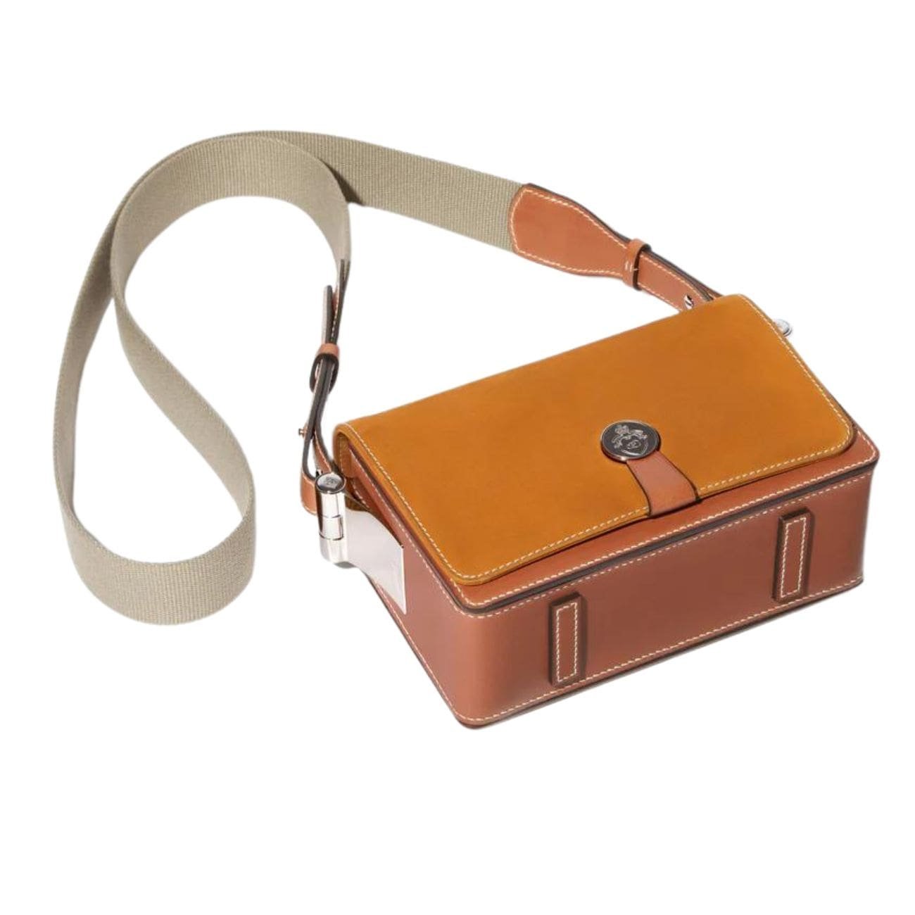 The adjustable leather strap ensures a comfortable fit, whether worn over the shoulder or across the body. This versatility makes it a practical choice for the modern individual who is always on the go. The bag’s sturdy construction and attention to detail reflect the brand’s commitment to quality and craftsmanship.