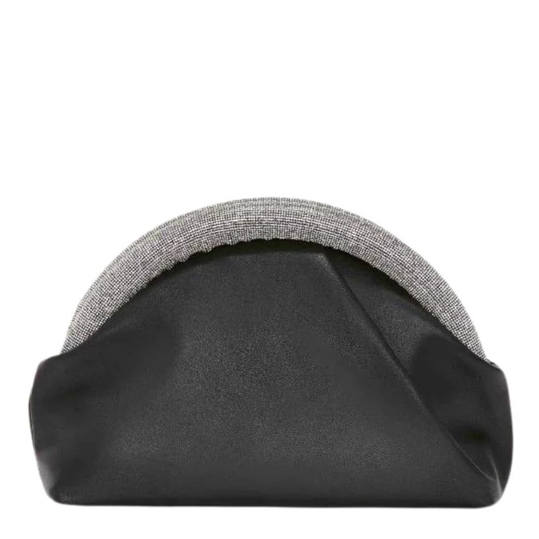 In summary, the Leather Clutch Bag with its top magnetic opening, oversized tubular design detail with crystal embellishments, and silver logo embossing is the epitome of elegance and sophistication. Whether paired with a chic evening gown or dressed down with jeans and a blouse, this versatile accessory is sure to elevate your ensemble with its timeless allure and undeniable charm.
