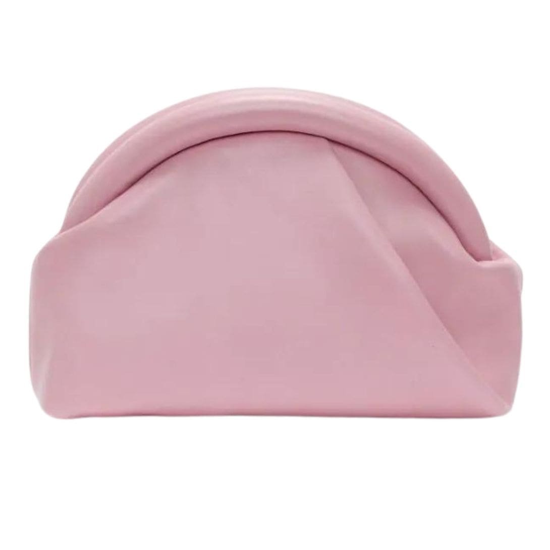 At the heart of its design is the oversized tubular design detail, a distinctive feature that adds dimension and visual interest to the clutch. This bold embellishment serves as a striking focal point, elevating the bag’s aesthetic and making a statement of refined elegance.