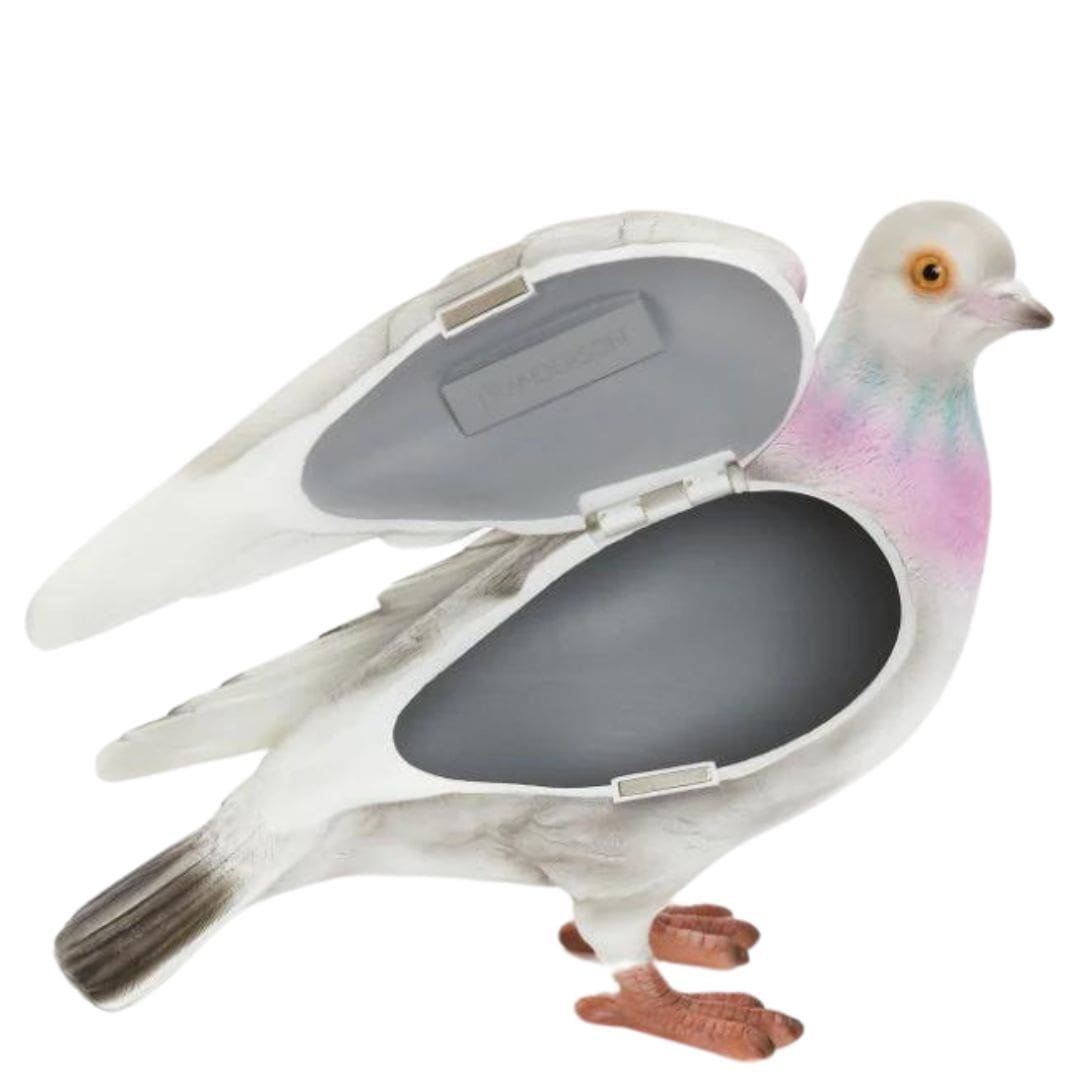 At the heart of this creation lies the iconic 3D-printed pigeon motif, a symbol of grace and freedom. Carefully crafted with precision, the pigeon adorns the exterior of the clutch, adding a touch of whimsy and charm to its design. Each intricate detail of the pigeon is brought to life through innovative 3D printing technology, ensuring unparalleled realism and depth.