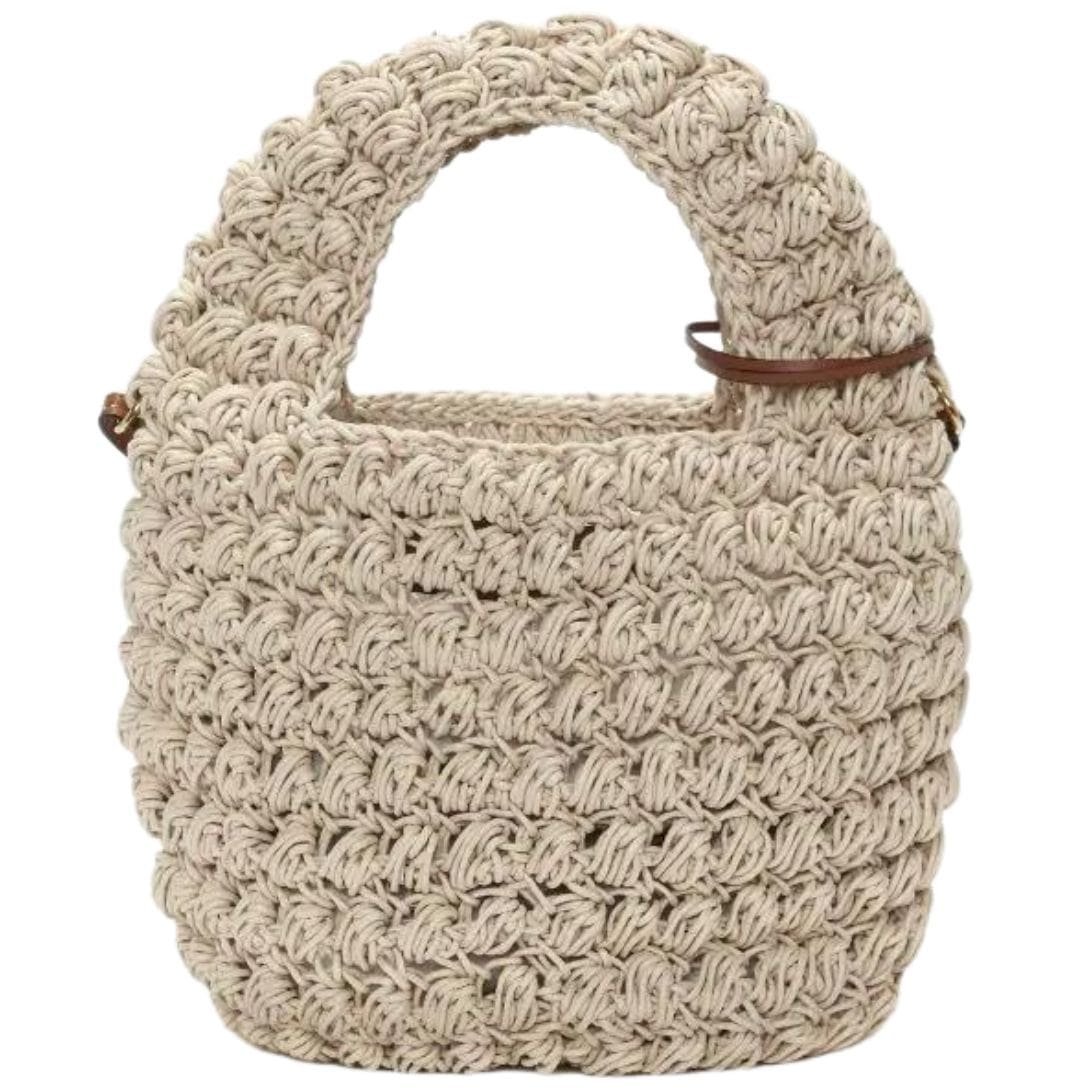 Crafted from knitted cotton, this basket bag exudes a sense of relaxed sophistication. The intricate knitting adds depth and texture, reminiscent of lazy summer afternoons and coastal retreats. Its lightweight construction makes it a versatile companion for any outing, whether you’re exploring the city streets or relaxing by the beach.