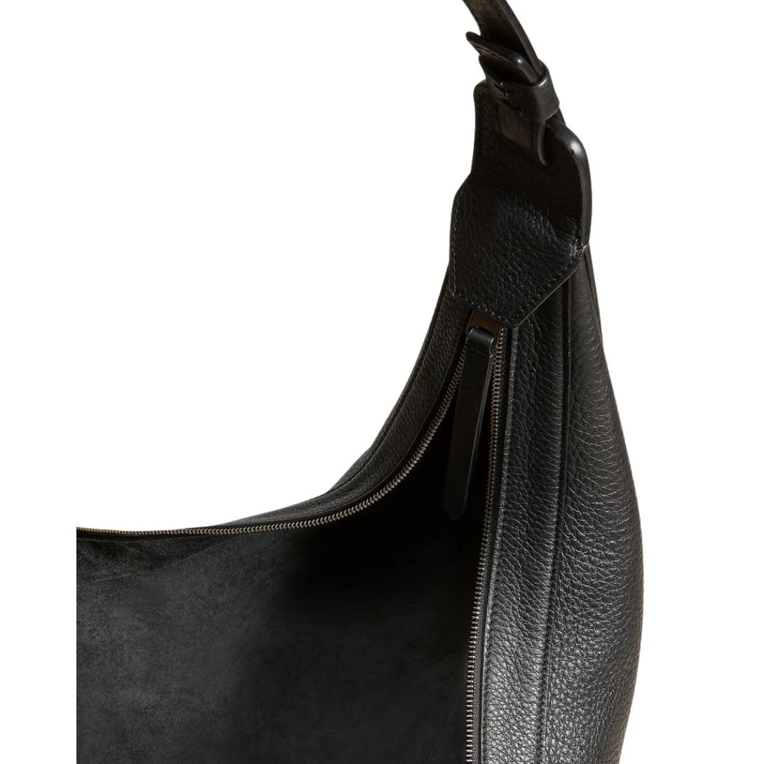 Streamlined yet spacious, this lightweight zip-top hobo bag by KHAITE blends architectural precision with luxurious craftsmanship. Made in Italy from richly textured pebbled calfskin, it’s defined by clean lines, pristine finishing, and an adjustable integrated strap that allows for versatile wear — over the shoulder or as a crossbody.