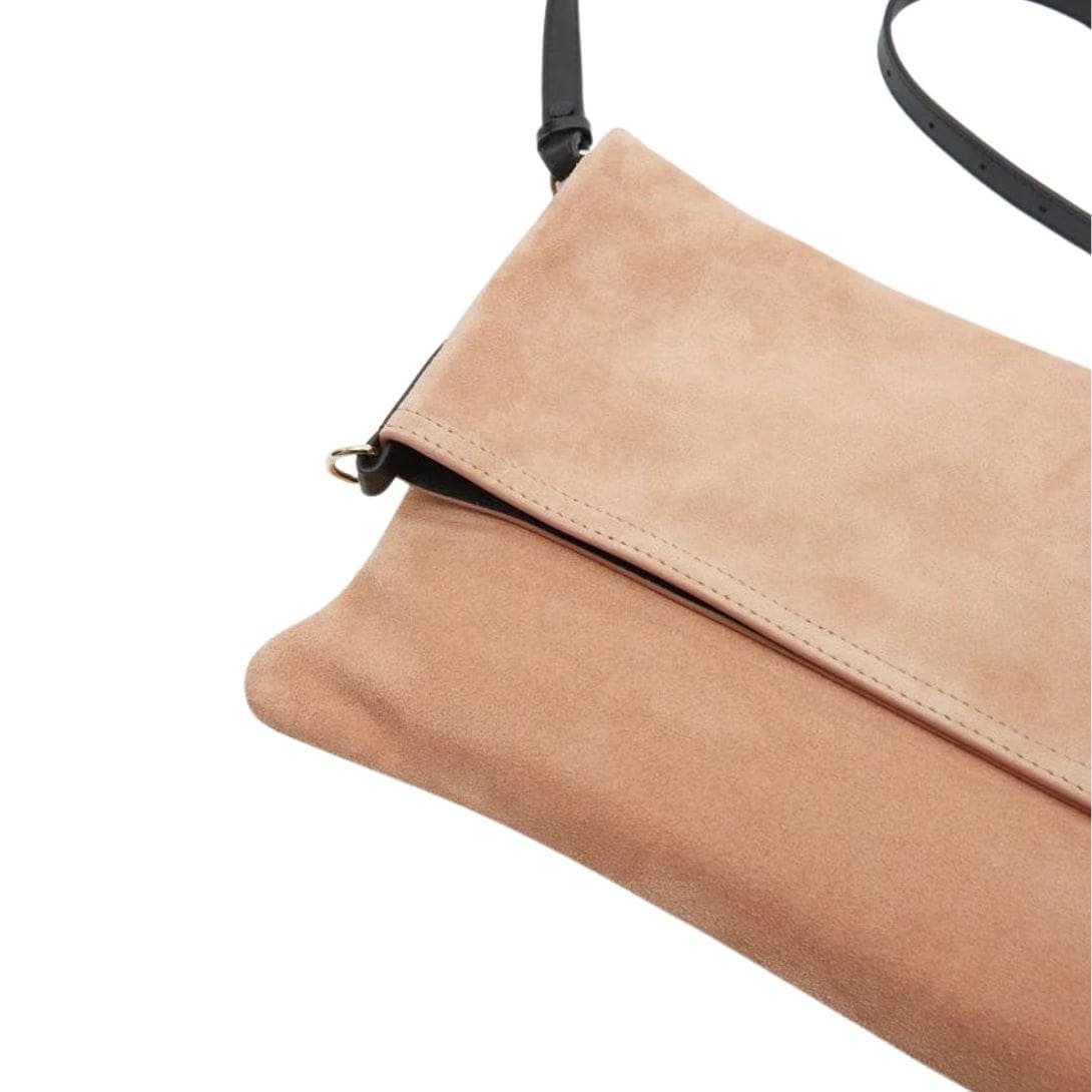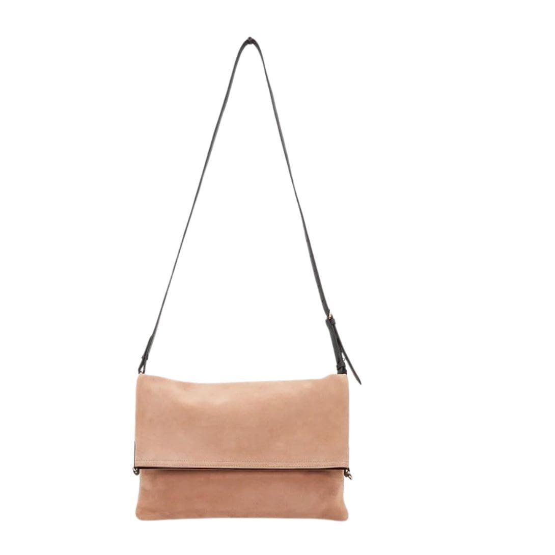 Dries Van Noten presents a pale pink La Garconne Dries Van Noten Suede Small Soft Bag with a soft suede leather trim. The adjustable and removable strap allows you to wear this bag in two versatile ways: with a fold-over top or an open top. It features an interior zip pocket and an embossed logo. The bag is unlined.