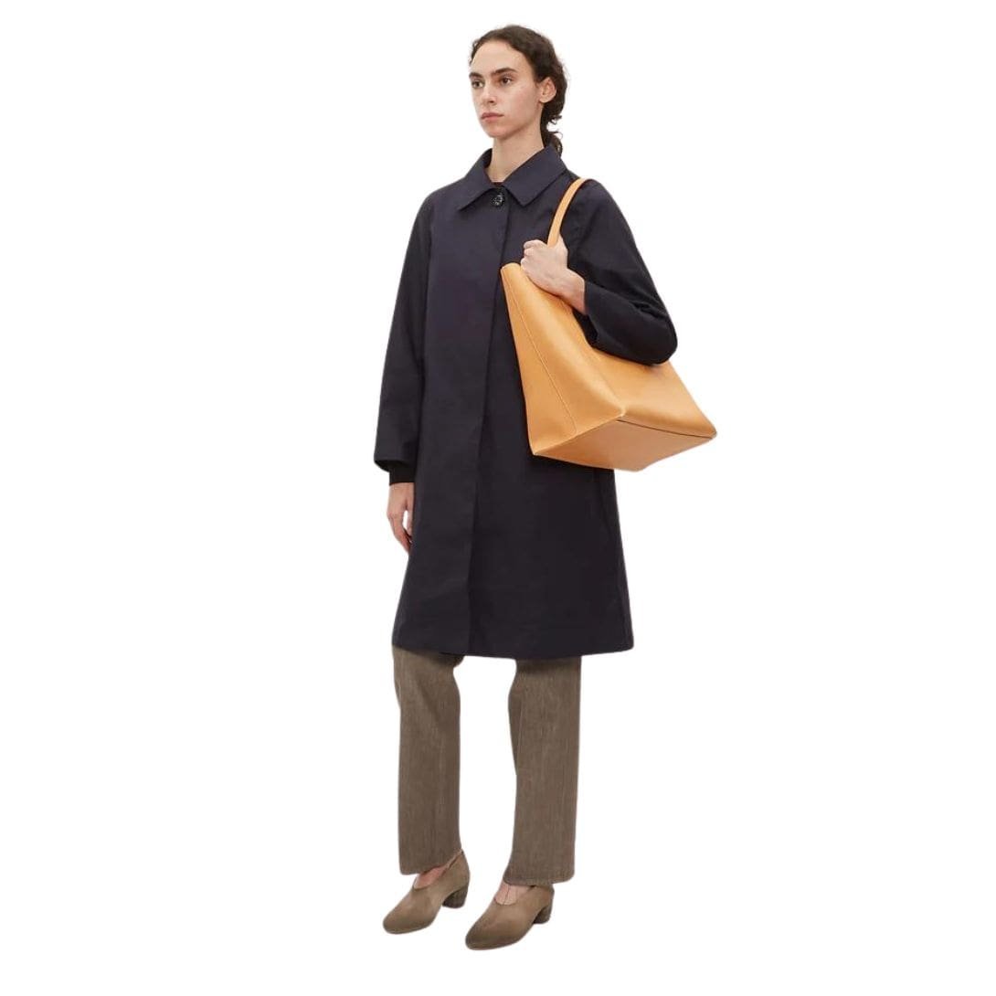 Introducing the La Garconne Isaac Reina Sac Panier Highway Grand Tote Bag crafted from rigid vegetable-tanned calf leather. This spacious bag features a main compartment with an additional interior pocket for added organization. Secured with two snap button closures below the handles, it offers both style and functionality. The bag is self-lined for a cohesive look.