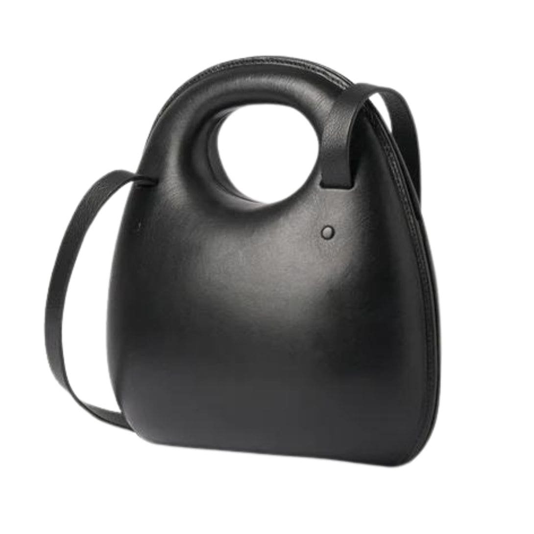 Introducing the La Garconne Lemaire Egg Bag with a crossbody strap, crafted from smooth leather. This unique piece is entirely molded, with its organic shape emerging as the smooth leather is worked over a metal structure. Each bag is hand-waxed and polished, resulting in a distinctive finish. The compact design features a hard molded exterior, an adjustable and removable crossbody strap, and a magnetic closure. The interior is lined in leather for a luxurious touch.