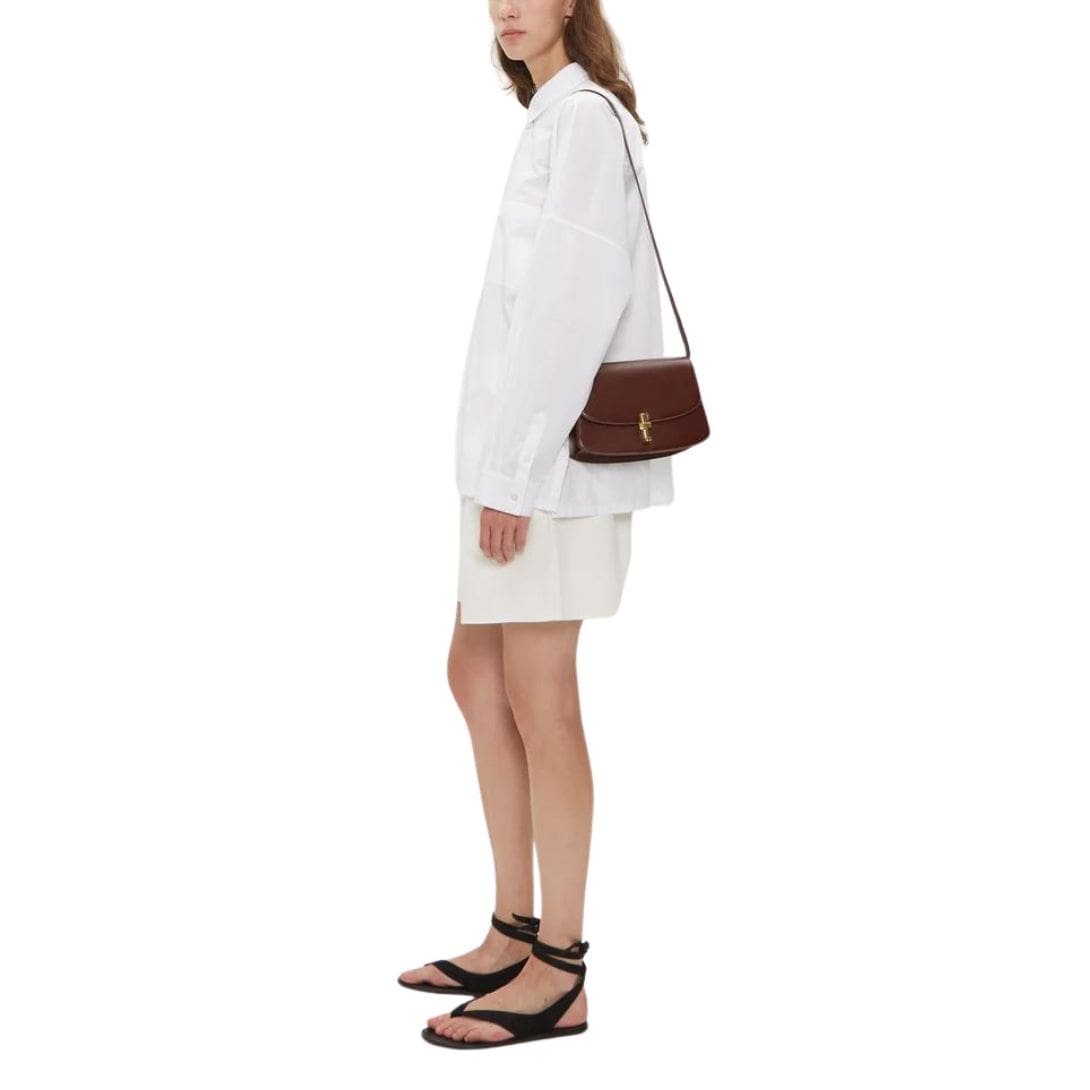 Introducing La Garconne the Row Sofia 8.75 Crossbody — Bourbon now available in a new, smaller size. Crafted from sleek calfskin leather, this elegant accessory features an adjustable shoulder strap for versatile styling and a secure lock closure.