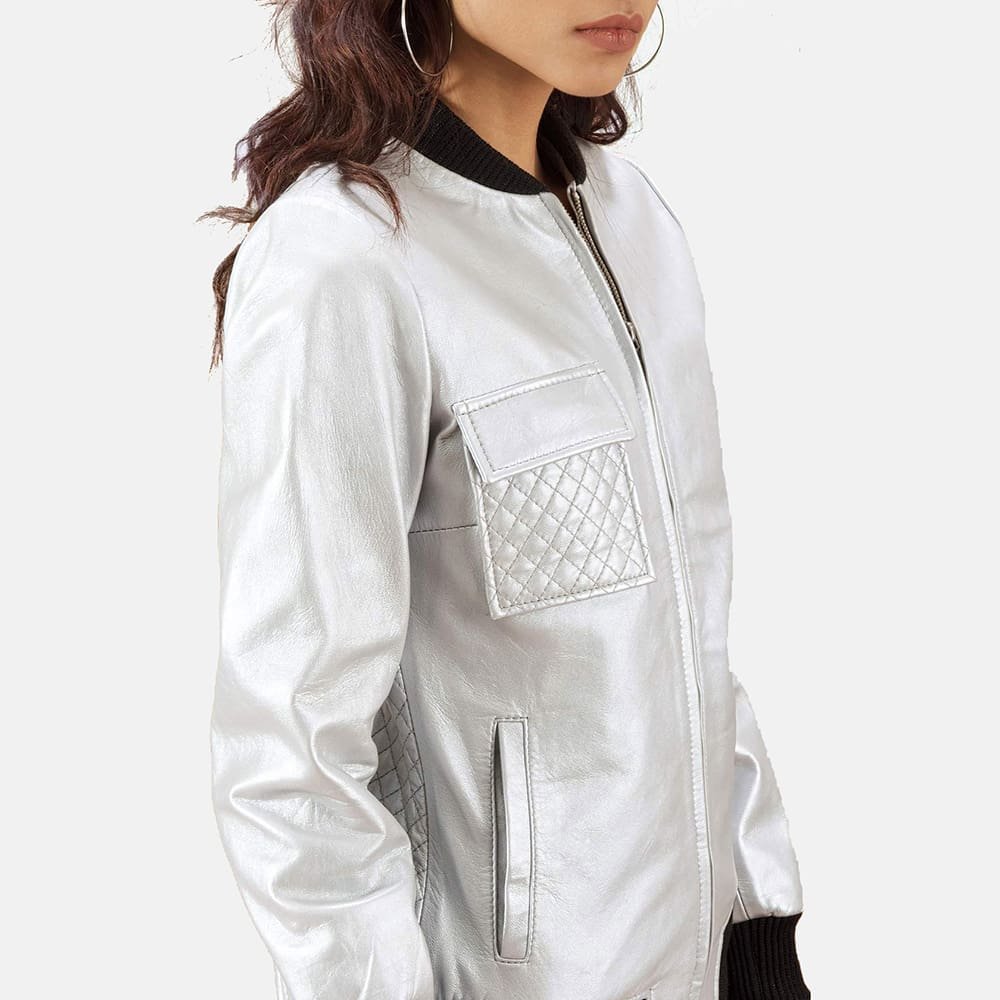 Lana Silver Leather Bomber Jacket