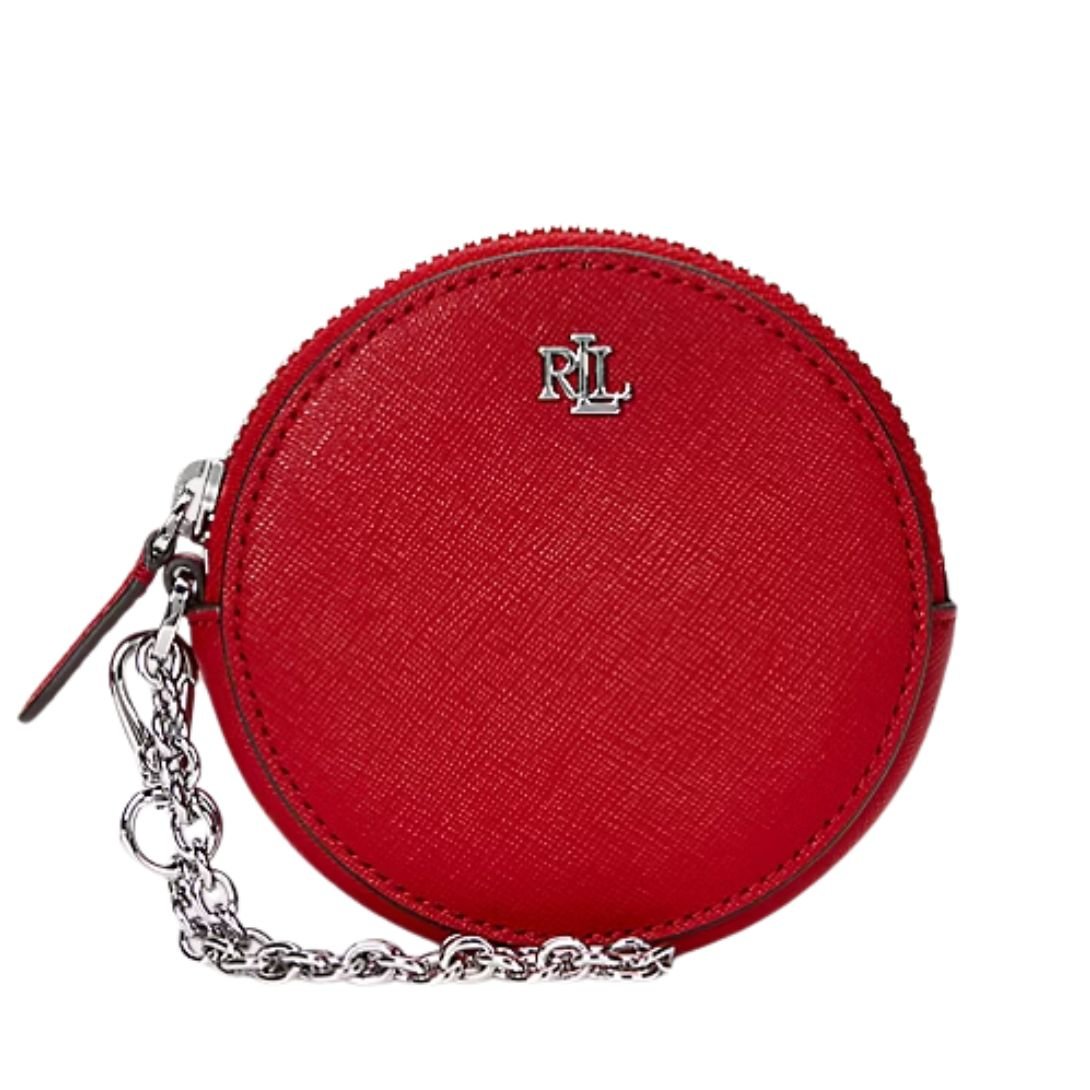 Perfectly sized for life on the go, this small round pouch by Lauren Ralph Lauren is a stylish way to keep your essentials close. Its sleek silhouette, crosshatch leather finish, and convertible chain wrist strap make it both fashionable and functional.