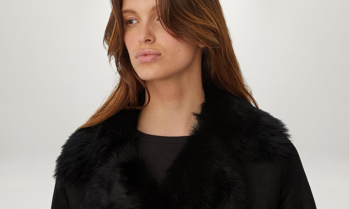 Glossy, long-hair Toscana shearling with light wax finish on outer to give a smooth touch.