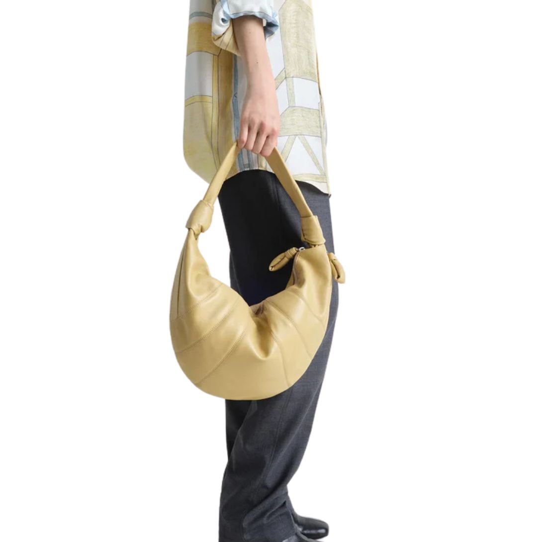 With a shorter strap than the classic Croissant, the Fortune is designed to be worn comfortably over the shoulder or carried by hand. Its spacious main compartment holds everyday essentials such as a smartphone or a small book, while the discreet lateral zip pocket and internal patch pocket keep smaller items like a wallet, keys, or AirPods Pro 2 case neatly tucked away.