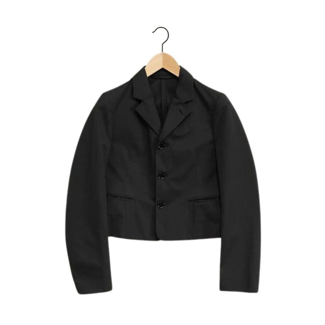 The single-breasted design of the jacket lends it a streamlined silhouette, enhancing its versatility. Lemaire’s choice of high-quality fabrics ensures not only a luxurious feel but also durability and comfort. The short length of the jacket adds a contemporary twist, making it a standout piece for those who appreciate a blend of classic and modern styles.