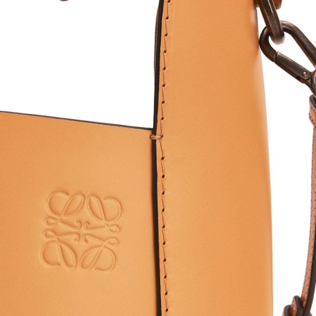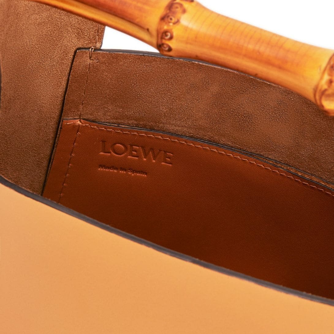 Loewe Bamboo Bucket Bag In Calfskin a refined color light brown, creating a timeless and sophisticated look. Crafted from premium calf leather, it offers a luxurious feel and exceptional durability, ensuring it remains a staple in your wardrobe for years to come.