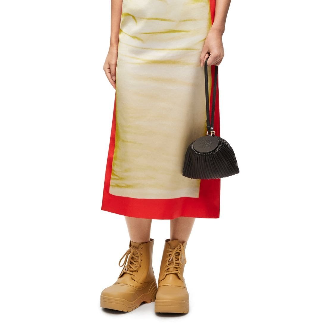 Its timeless design and practical features make it a versatile addition to any wardrobe, seamlessly transitioning from day to night. Perfect for storing your essentials in style, the LOEWE Bracelet Pouch combines fashion and function effortlessly, reflecting the brand’s commitment to quality craftsmanship and innovative design.