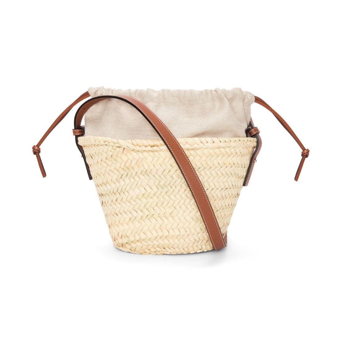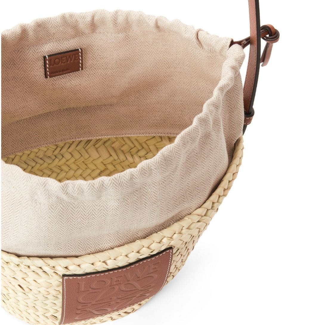 LOEWE BUCKET BAG WITH DRAWSTRING IN PALM LEAF AND CALFSKIN