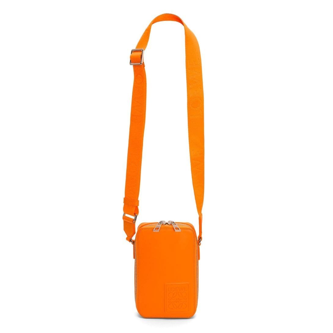 Loewe Cotton Case With Drawstring striking accessory, available in a vibrant bright orange, is crafted from premium satin calf leather. The bold color exudes confidence and energy, making it a standout piece in any collection. Accentuated with palladium metallic details, the bag perfectly balances modernity and elegance, ensuring it catches the eye wherever you go.