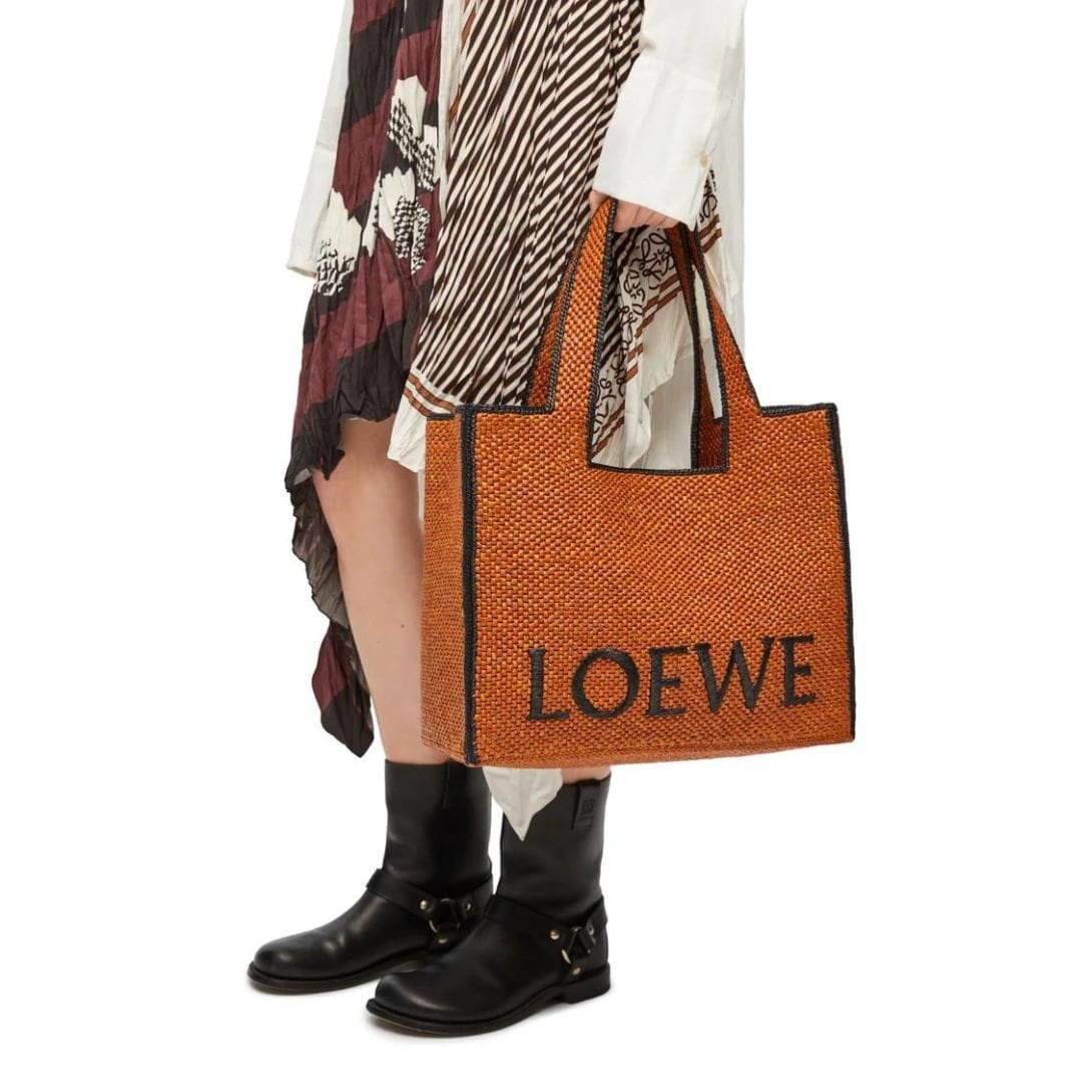 LOEWE FONT TOTE LARGE BAG IN RAFFIA