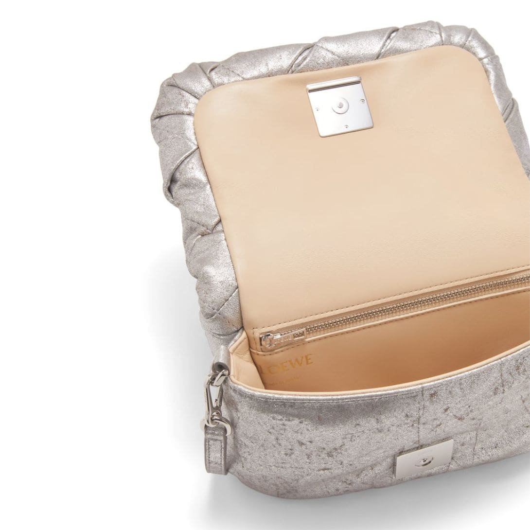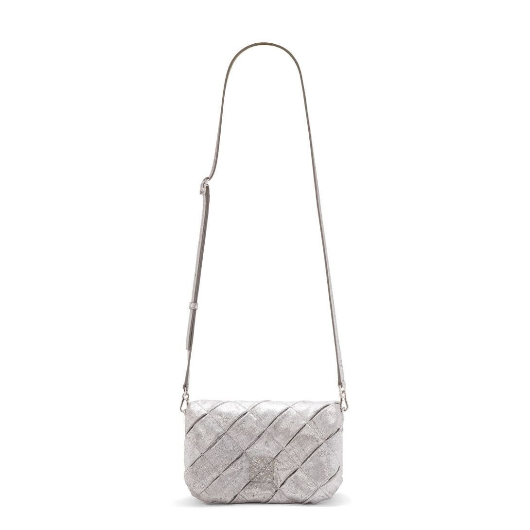 LOEWE GOYA PUFFER MINI BAG IN PLEATED METALLIC LEATHER