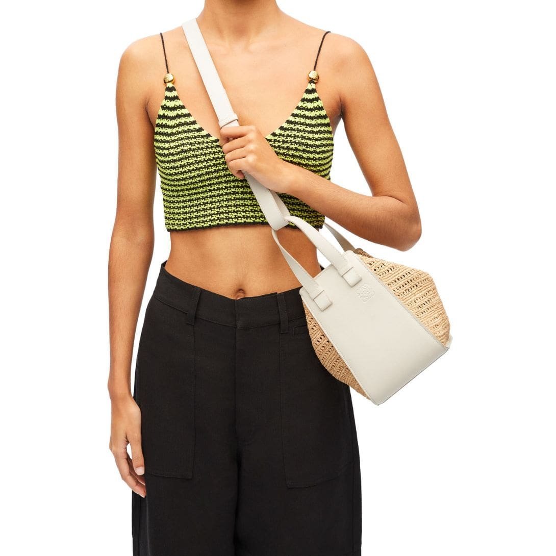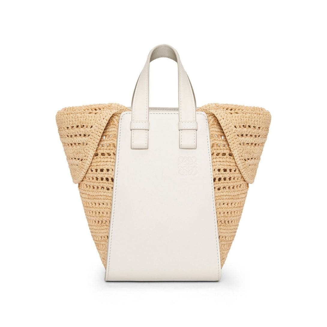 LOEWE HAMMOCK COMPACT BAG IN RAFFIA AND CALFSKIN