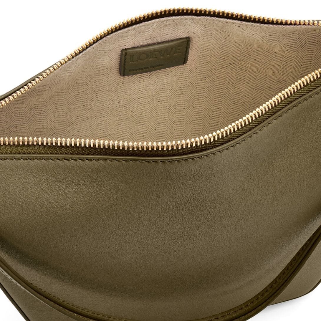 The LOEWE Hammock Hobo Mini Bag In Classic Calfskin epitomizes understated luxury, meticulously fashioned from classic calf leather. This premium material not only exudes timeless elegance but also ensures durability, providing a sophisticated touch to your daily ensemble.