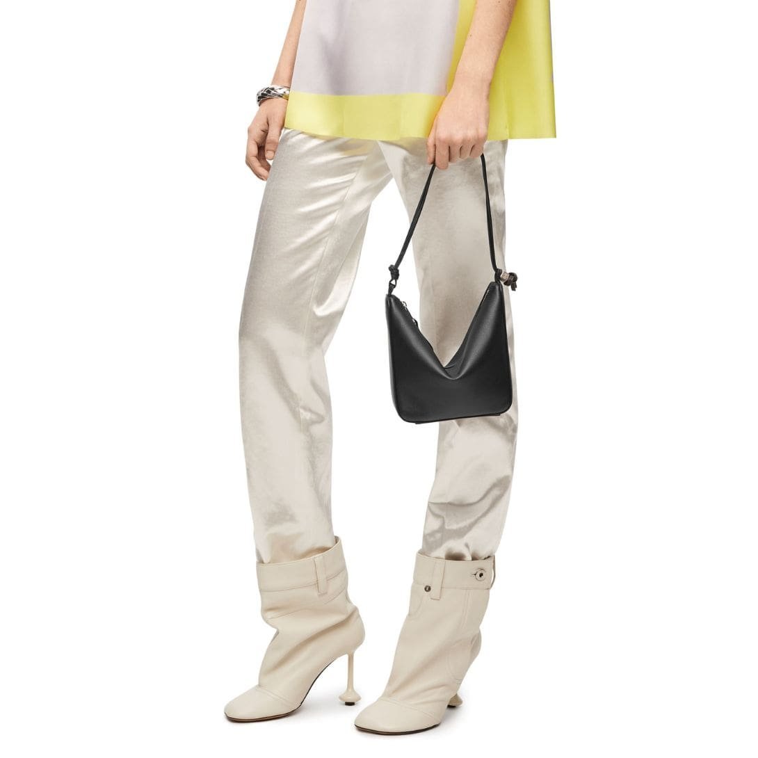 In summary, the LOEWE Hammock Hobo Mini Bag in classic calf leather is a fusion of style and functionality. Its premium materials, versatile design, and lightweight construction make it an indispensable accessory for those seeking sophistication in their everyday carry. Whether for work or leisure, this bag promises to elevate your ensemble with its understated elegance and practicality.