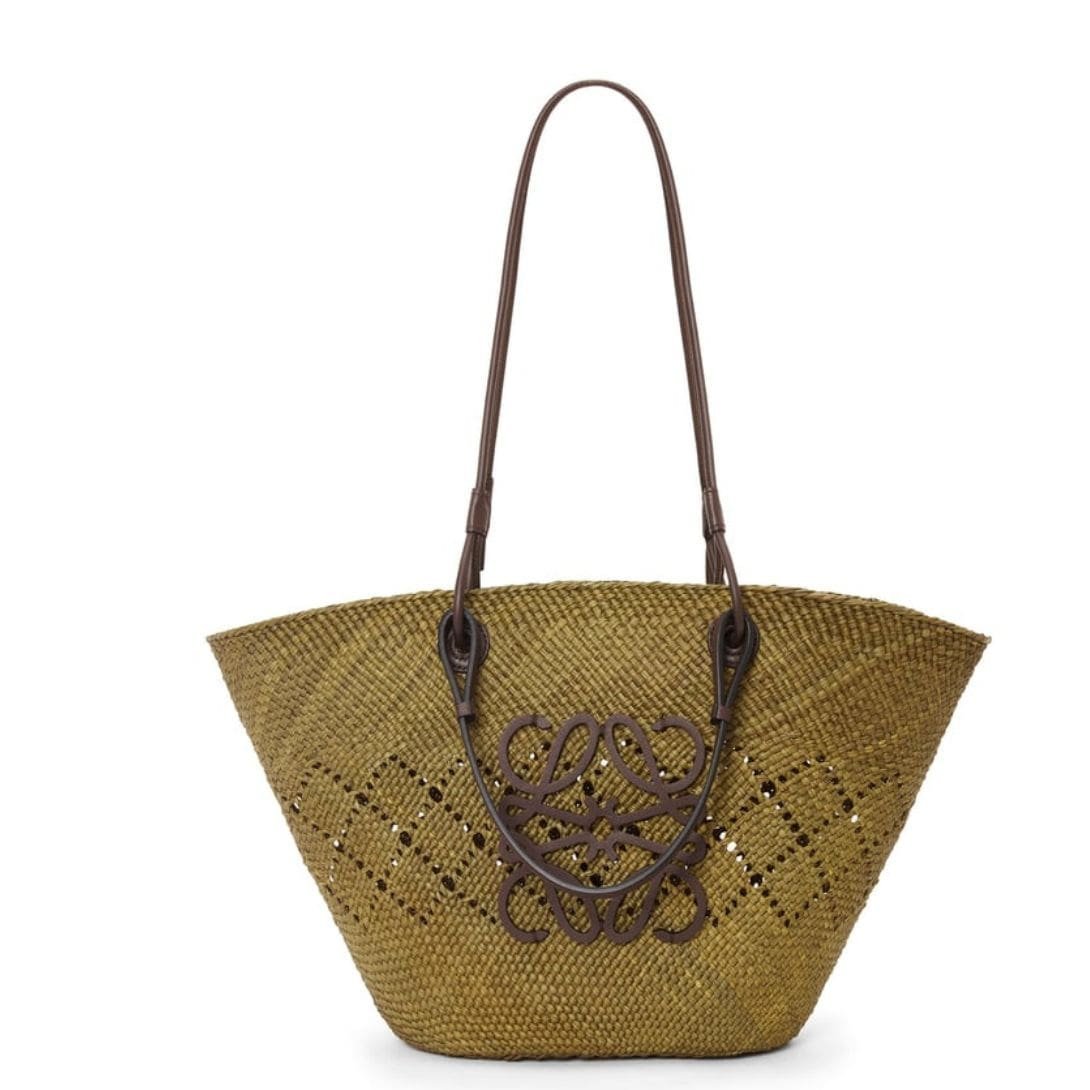 LOEWE LARGE ANAGRAM BASKET BAG IN IRACA PALM AND CALFSKIN