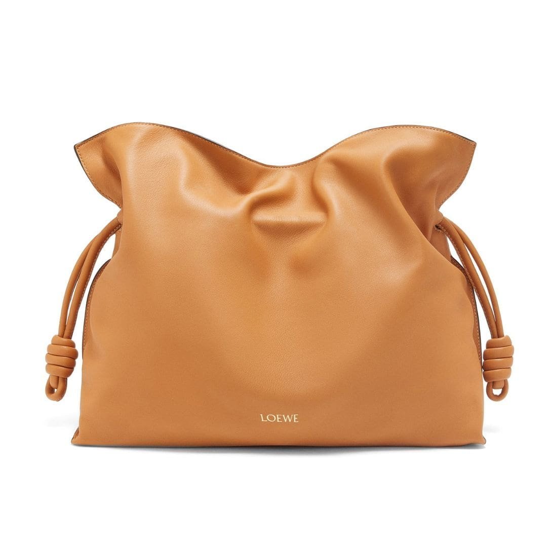 In summary, the LOEWE Large Flamenco Clutch Bag in Calfskin Nappa is a luxurious and practical accessory. Made from premium calf nappa leather, it features a 29 cm handle drop and weighs 0.64 kg. With dimensions of 29 cm (11.4 inches) in height, 38 cm (15 inches) in width, and 14 cm (5.5 inches) in depth