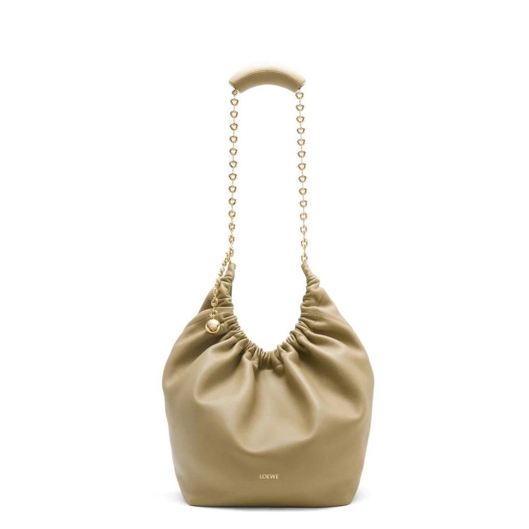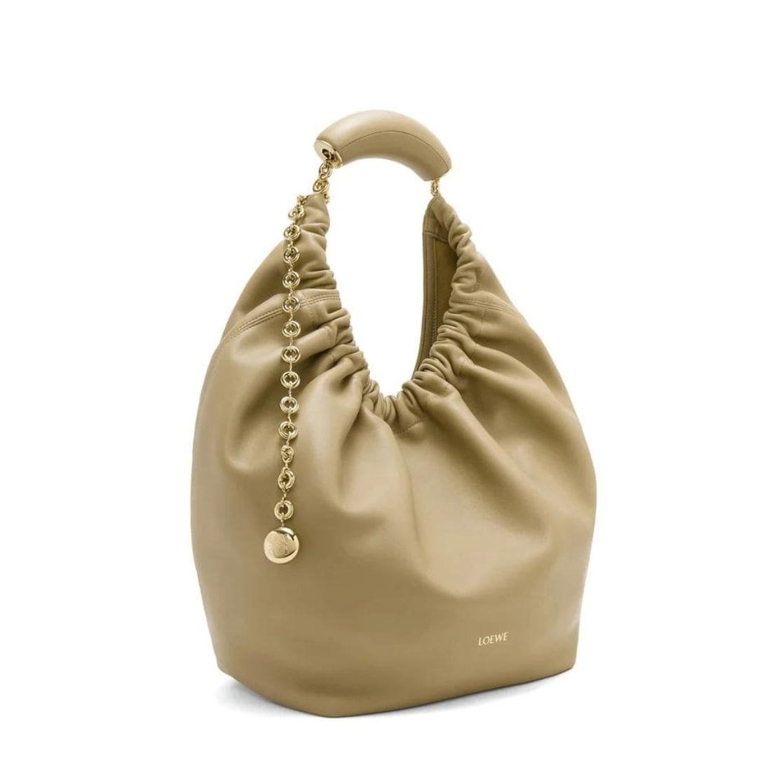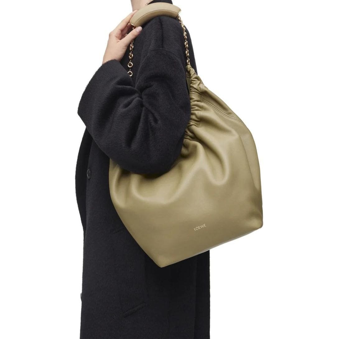 The elegant design of the LOEWE Medium Squeeze Bag is complemented by its practical features. The soft lamb nappa leather ensures durability while giving the bag a refined, polished look. This blend of form and function makes it a versatile accessory that can be paired with both casual and formal outfits.