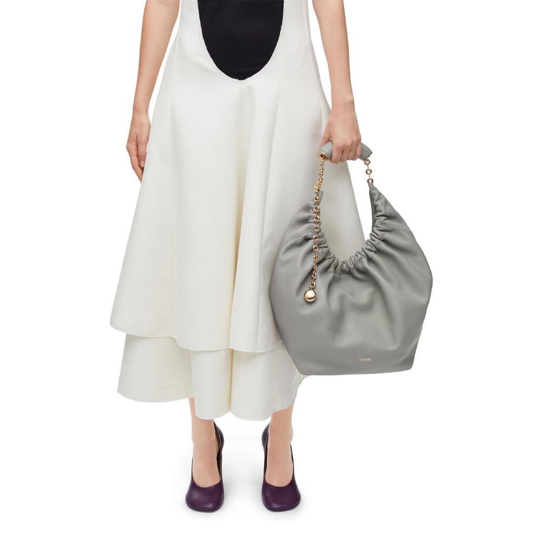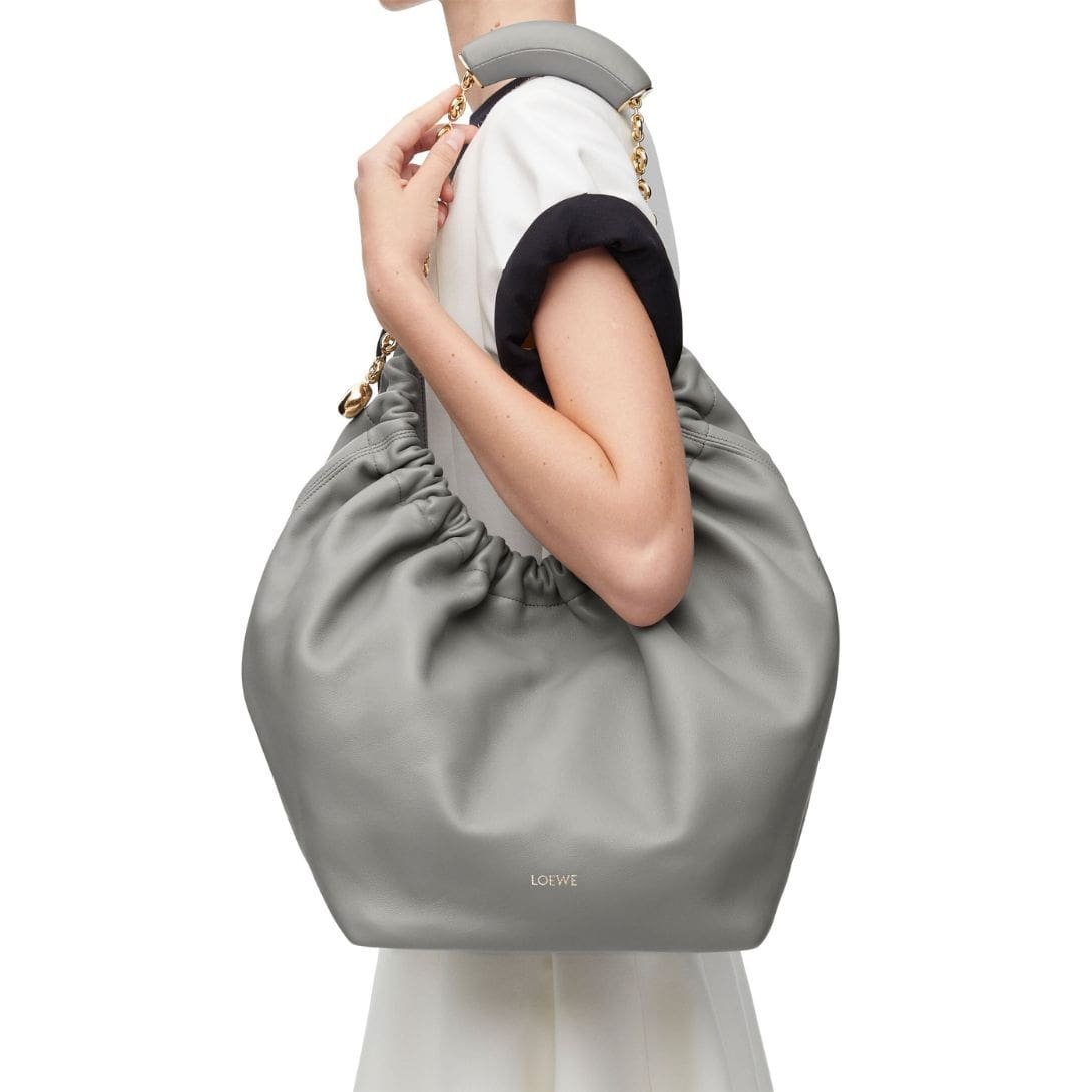 The elegant design of the LOEWE Medium Squeeze Bag is complemented by its practical features. The soft lamb nappa leather ensures durability while giving the bag a refined, polished look. This blend of form and function makes it a versatile accessory that can be paired with both casual and formal outfits.